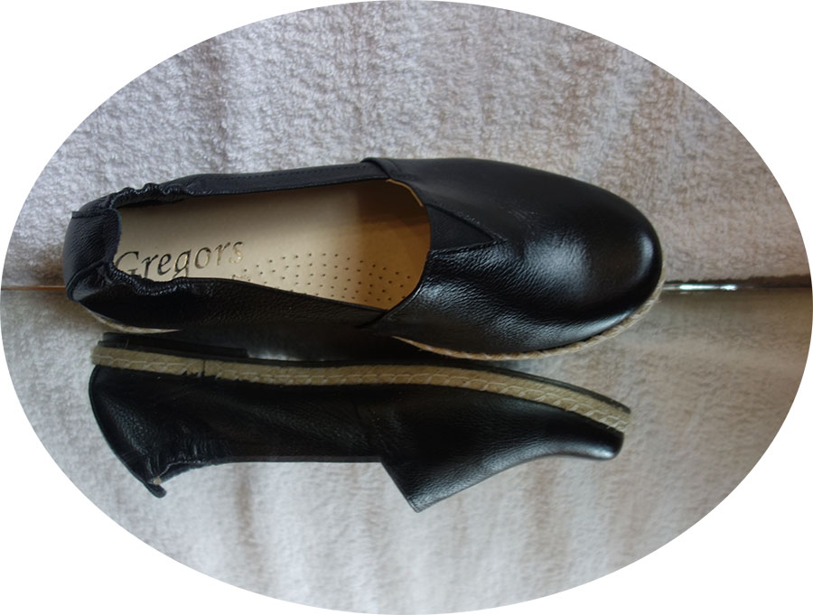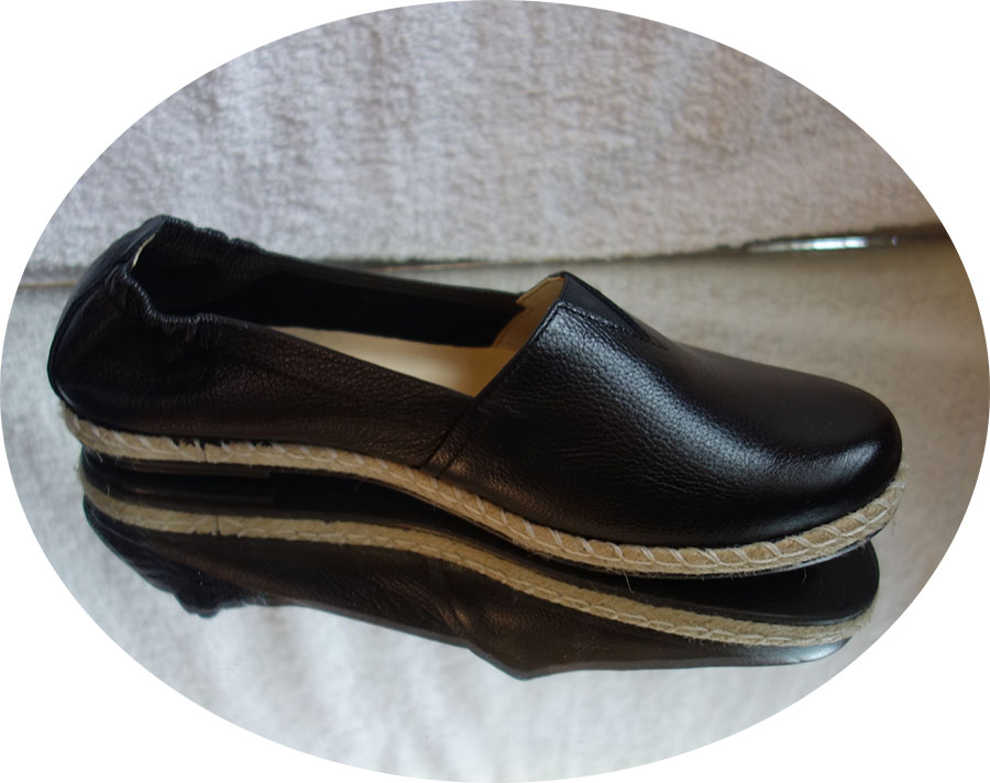 o wygodnej płaskiej niskiej koturence wysokiej 1,5 cm z tyłu z przodu 0,5 cm