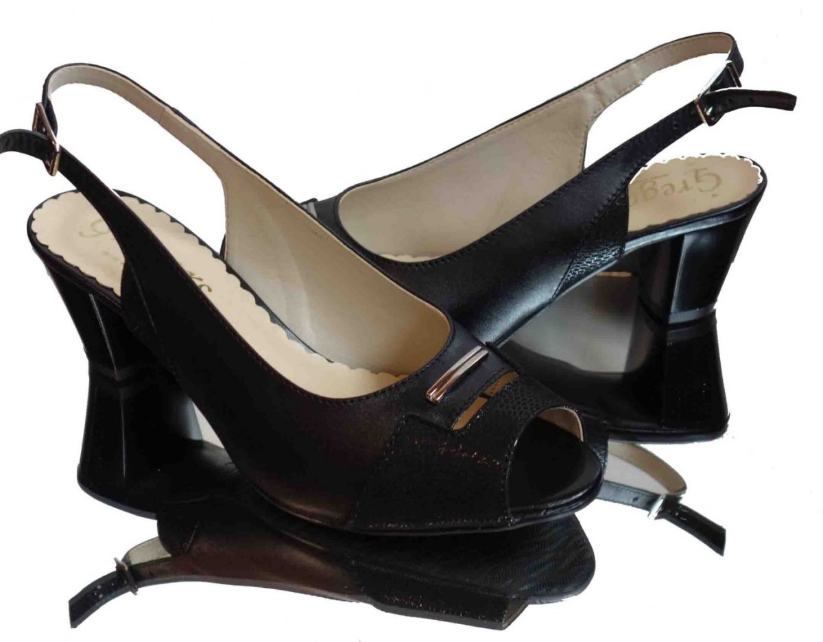 Czarne Sandałki Skórzane na Szeroką Stopę 40