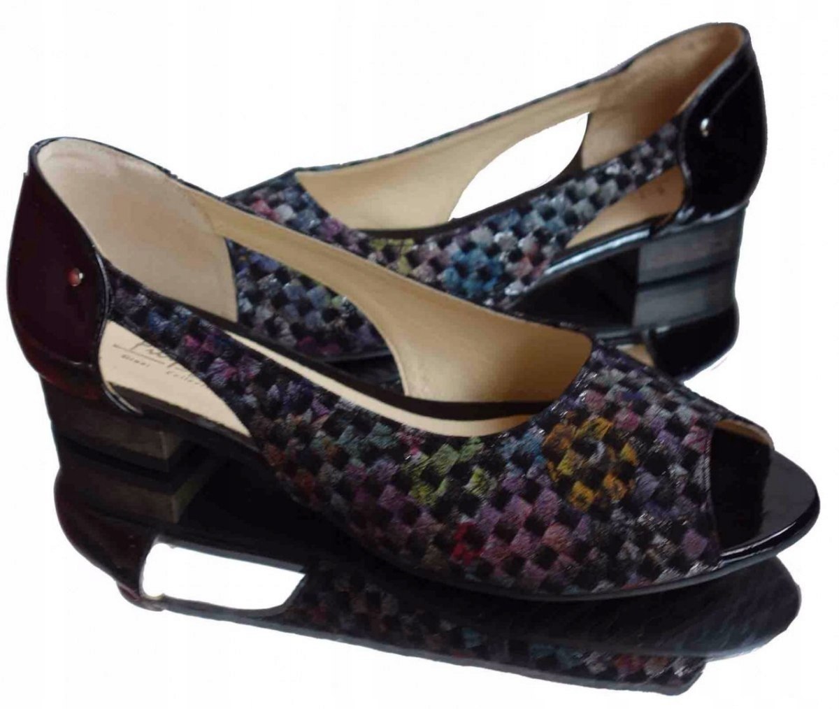 - Czarny lakierek z tyłu buta dodający elegancji