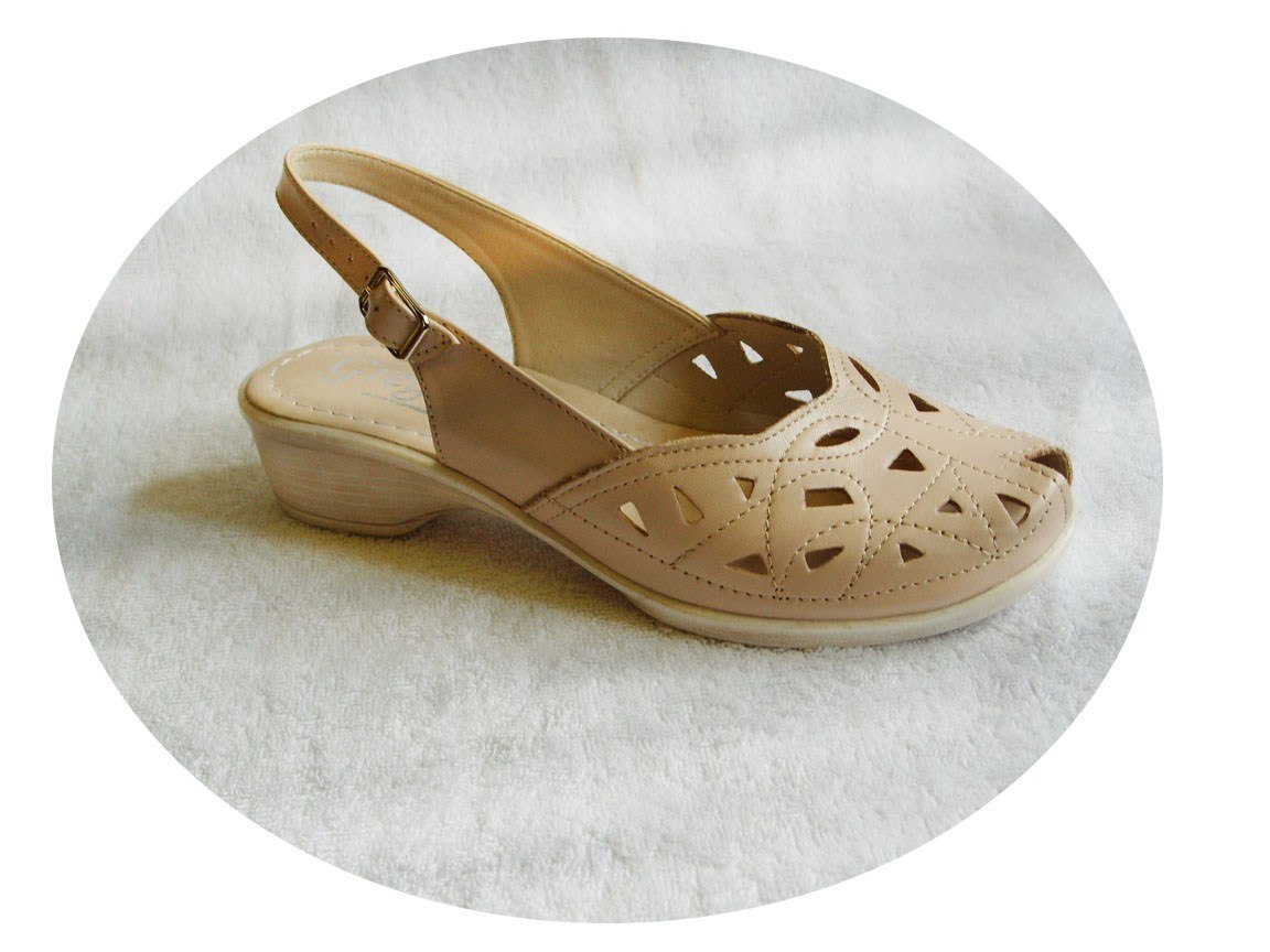 Elegancki sandał w rozmiarze 41, wykonany z naturalnej skóry. Ten ponadczasowy model to idealne obuwie dla kobiet o wyjątkowych wymaganiach. Sandałki są wyprodukowane przez polskiego producenta z dbałością o solidne wykonanie i wysoką jakość. Buty są wygodne, lekkie i modnie eleganckie, co sprawia, że doskonale prezentują się na każdej stopie. Skórzane sandałki mają klasyczny kształt i są dostępne w kolorze beżowym, który wpasuje się w różnorodne stylizacje. Koturna o wysokości 3,8 cm zapewnia stabilność podczas chodzenia. Wkładka skórzana wnosi dodatkowy komfort, a miękkie wykończenie chroni pięty. Sandały posiadają antypoślizgową podeszwę, co zwiększa poczucie bezpieczeństwa. Wybierając rozmiar, prosimy sugerować się wygodą i długością stopy. Buty są idealne zarówno dla stóp szczupłych, jak i szerokich. Niezależnie od długości wkładki, odpowiednio pielęgnowane skórzane buty będą służyć latami. Oferowane obuwie jest nowe, zapakowane oryginalnie i objęte gwarancją producenta, wolne od wad fabrycznych. Zapraszamy do udanych zakupów!