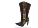 Kozaki są dostępne w dwóch klasycznych kolorach - czarnym i brązowym, które są jednolitymi tłem dla złotych ćwieków i cyrkonii, dodając precyzji do każdego kroku.