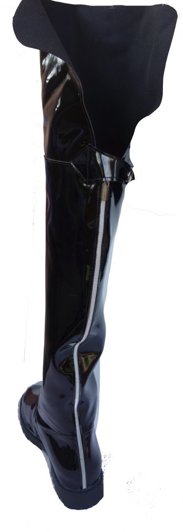 Kozaki mają również srebrny zamek wszyty z tyłu na całej długości, co ułatwia ich zakładanie i zdejmowanie. Wymiary poszczególnych obszarów łydki zostały dokładnie zmierzone - obwód w kostce wynosi 32-34 cm, na wysokości 30 cm – 43-45 cm, na wysokości 40 cm – 46-48 cm, a na wysokości 51 cm – 48-50 cm. Dodatkowo, cała cholewka ma wysokość 51 cm, a kołnierz 16 cm – razem 66 cm.