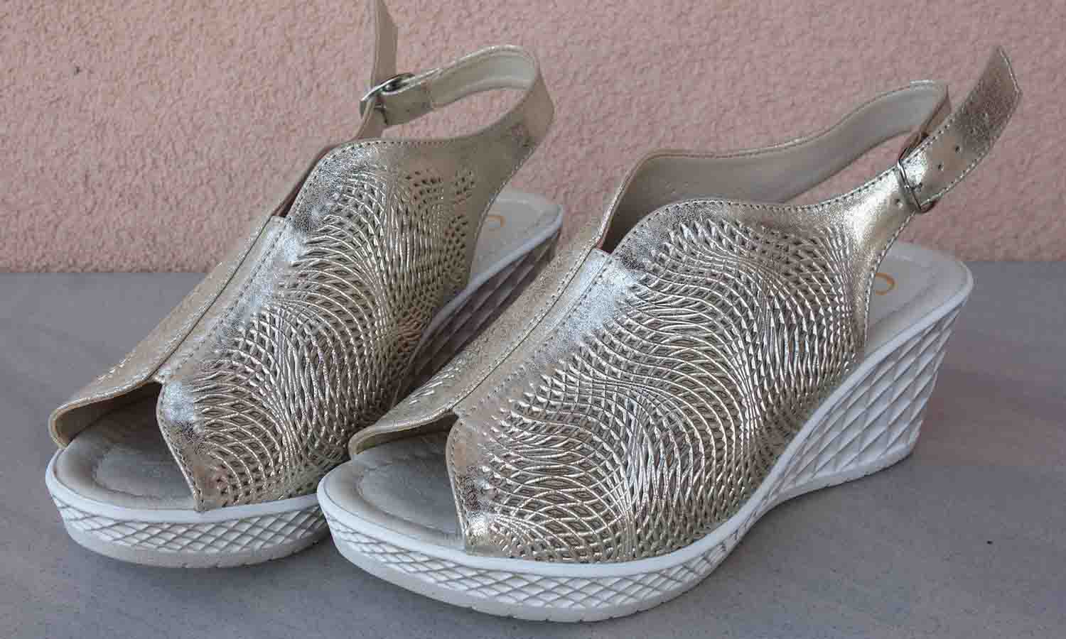Eleganckie sandałki z ażurowym wzorem to idealny dodatek do Twojej kolekcji obuwia. Wykonane ze skóry naturalnej licowej w kolorze złotym, te sandałki są nie tylko stylowe, ale także wygodne. Delikatny ażur nadaje im szyku i elegancji, idealnie pasują do wielu różnych stylizacji. Ta oferta jest dedykowana szczególnie dla Pań z szerokimi stopami, które mają trudności ze znalezieniem obuwia w tradycyjnych sklepach. Sandałki posiadają tęgość H, co oznacza, że są odpowiednie dla stop szerokich. Dostępne w różnych rozmiarach, z pewnością znajdziesz idealny dla siebie. Wygodna koturna służy jako stabilna podstawa, a sprzączka zapewnia trwałe i bezpieczne zapięcie. Dla pełnej satysfakcji, sandałki posiadają również wyściółkę ze skóry naturalnej, która oferuje odpowiednią oddychalność. Zestawiając komfort, wytrzymałość i styl, te sandałki zapewnią Ci niezapomniane doświadczenie noszenia. Spraw sobie przyjemność i dodaj do swojej garderoby te eleganckie sandałki z ażurowym wzorem już teraz!