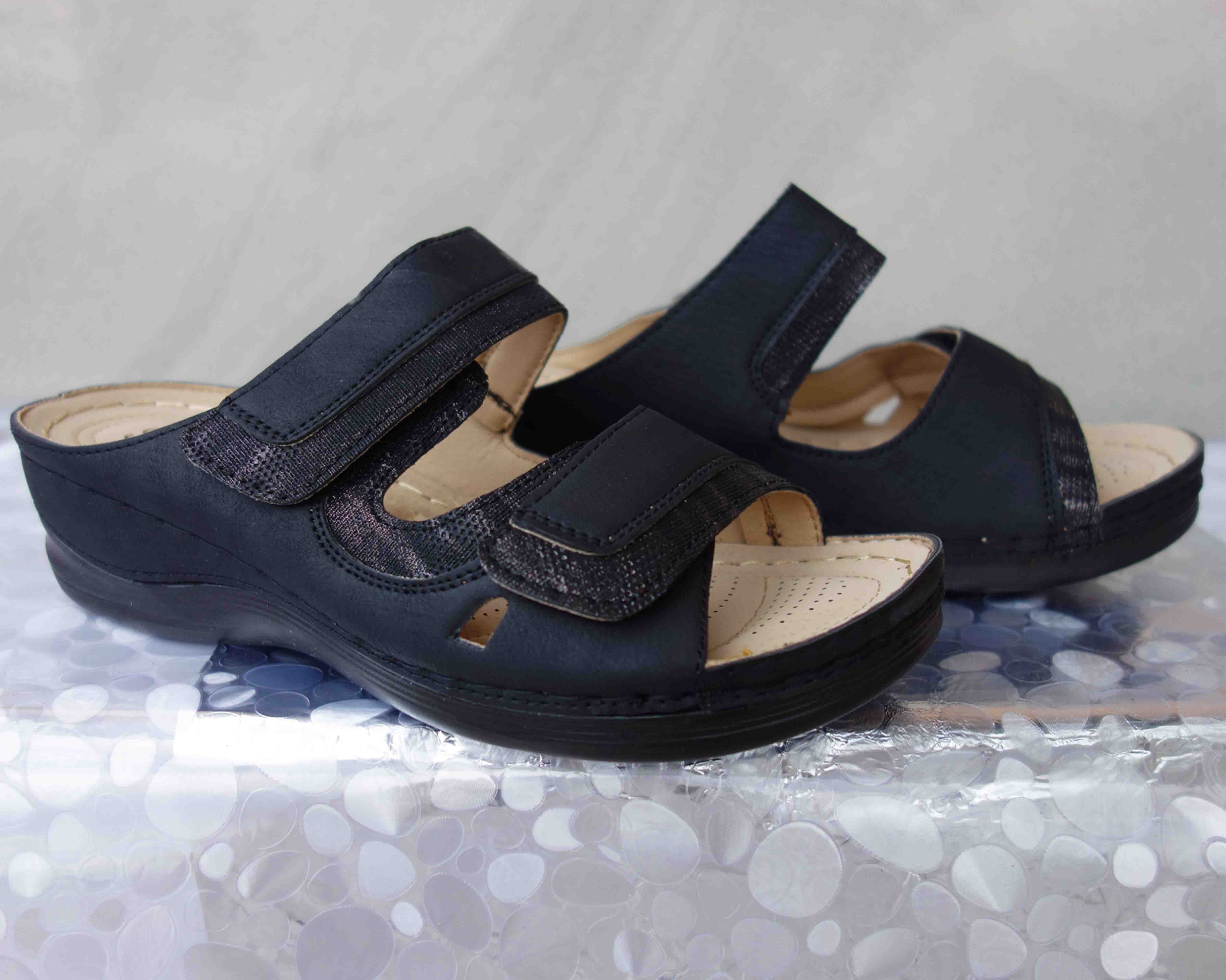 Eleganckie czarne sandały to doskonały wybór dla kobiet o szerszych stopach. Wygodne i stabilne, te regulowane sandały są świetnym rozwiązaniem dla tych, którzy cenią sobie komfort podczas chodzenia. Wykonane ze skóry eko, sandały są miękkie i elastyczne, zapewniając odpowiednie dopasowanie. Jeśli zastanawiasz się nad rozmiarem, zalecamy wybranie numeru większego niż zazwyczaj nosisz, ponieważ rozmiarówka jest nieco zaniżona.