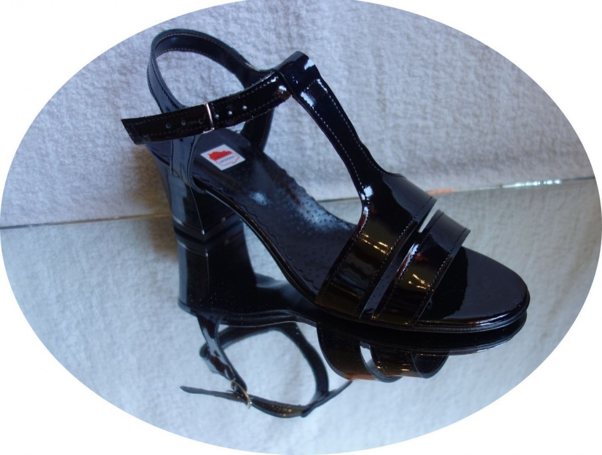 Prezentujemy eleganckie sandały damskie wykonane z wysokiej jakości skóry naturalnej. To modne i wygodne obuwie w kolorze czarnym ze skóry lakierowanej, idealne dla pań ceniących styl i wygodę.