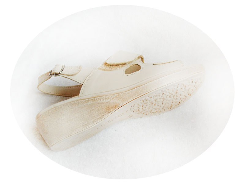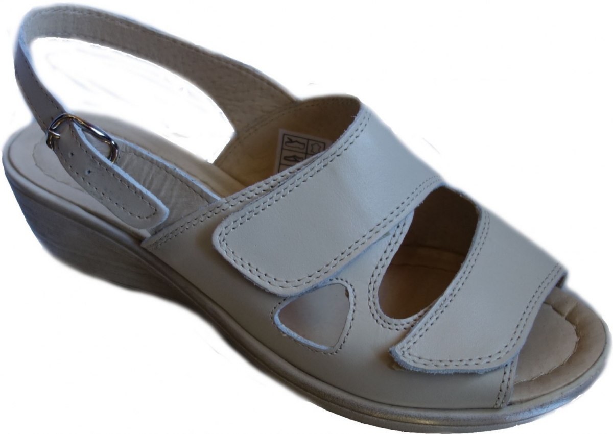 Dzięki mięciutkiej skórce beżowego koloru i wyściółce ze skóry miękkiej, buty te są niezwykle wygodne i przewiewne. Wyposażone w regulowany pasek z rzepem na przodzie, dostosowują się do szerokości i wysokości stopy. Buty mają szeroką tęgość na stopę, idealną dla osób z szeroką stopą i wysokim podbiciem.