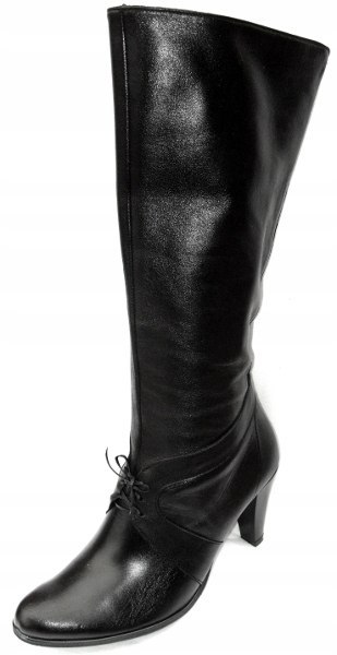 Kolor kozaków to elegancka czerń, a materiałem zewnętrznym jest wysokiej jakości skóra naturalna. Obuwie posiada zamek błyskawiczny, co ułatwia zakładanie i zdejmowanie butów. Ich fason jest klasyczny, noska migdałowego, a wysokość sięga kolana. Dodatkowo są ocieplone, co daje pewność ciepłych stóp w chłodniejsze dni. Obcas jest stabilny, słupek, o wysokości 9 cm, co dodaje elegancji całości.