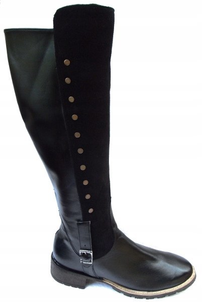 Eleganckie skórzane kozaki z szeroką cholewką