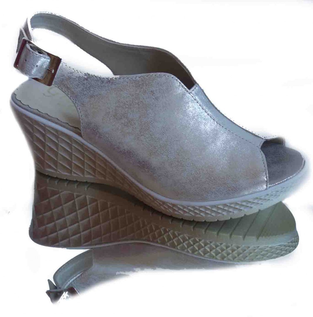 Ten polski produkt wyróżnia się przycierającym się srebrem, jak na zdjęciach. Jego elegancki wygląd i wygodna koturna, o wysokości aż 6,8 cm z tyłu i 2,3 cm z przodu, nadają mu unikalny charakter. Bez wątpienia, te lekkie sandałki będą stanowić idealne uzupełnienie garderoby dla kobiet, które cenią sobie szyk i elegancję.