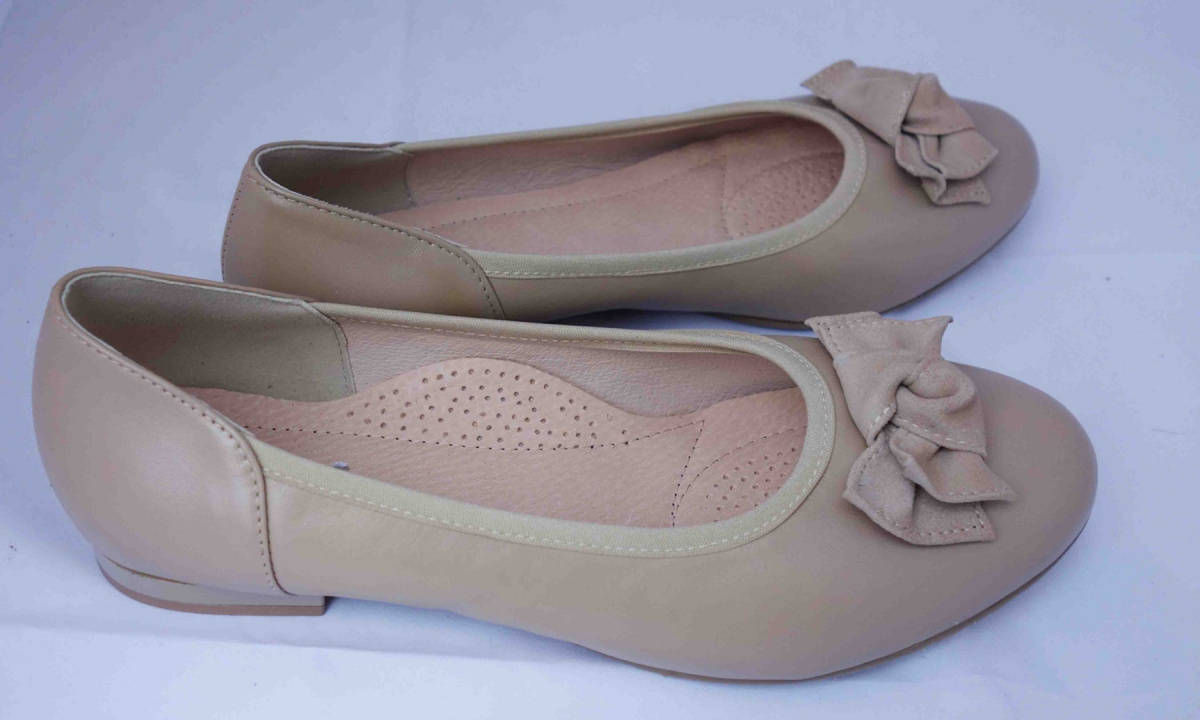 Podeszwa butów wykonana jest płaska, co zapewnia stabilność podczas chodzenia. Dodatkowo, baleriny są wyposażone w oddychającą wkładkę ze skóry naturalnej, zapewniającą optymalne warunki higieny stopy.