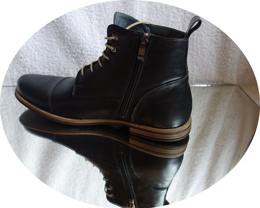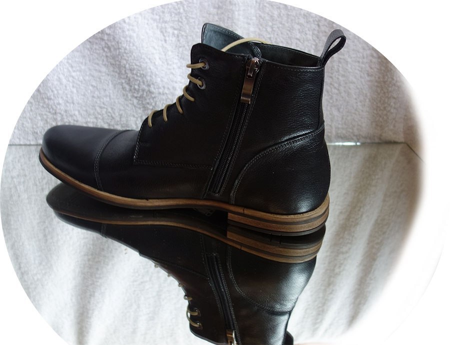 Chołwka butów jest w całości wykonana z naturalnej skóry, bez żadnych dodatków eko. Podeszwa buta jest wizytowa, wykonana z gumy, co zapewnia świetną przyczepność. Buty mają sznurowane z przodu, a dla leniuszków dodatkowo wszyty zamek z boku, który pozwala na błyskawiczne ich założenie.