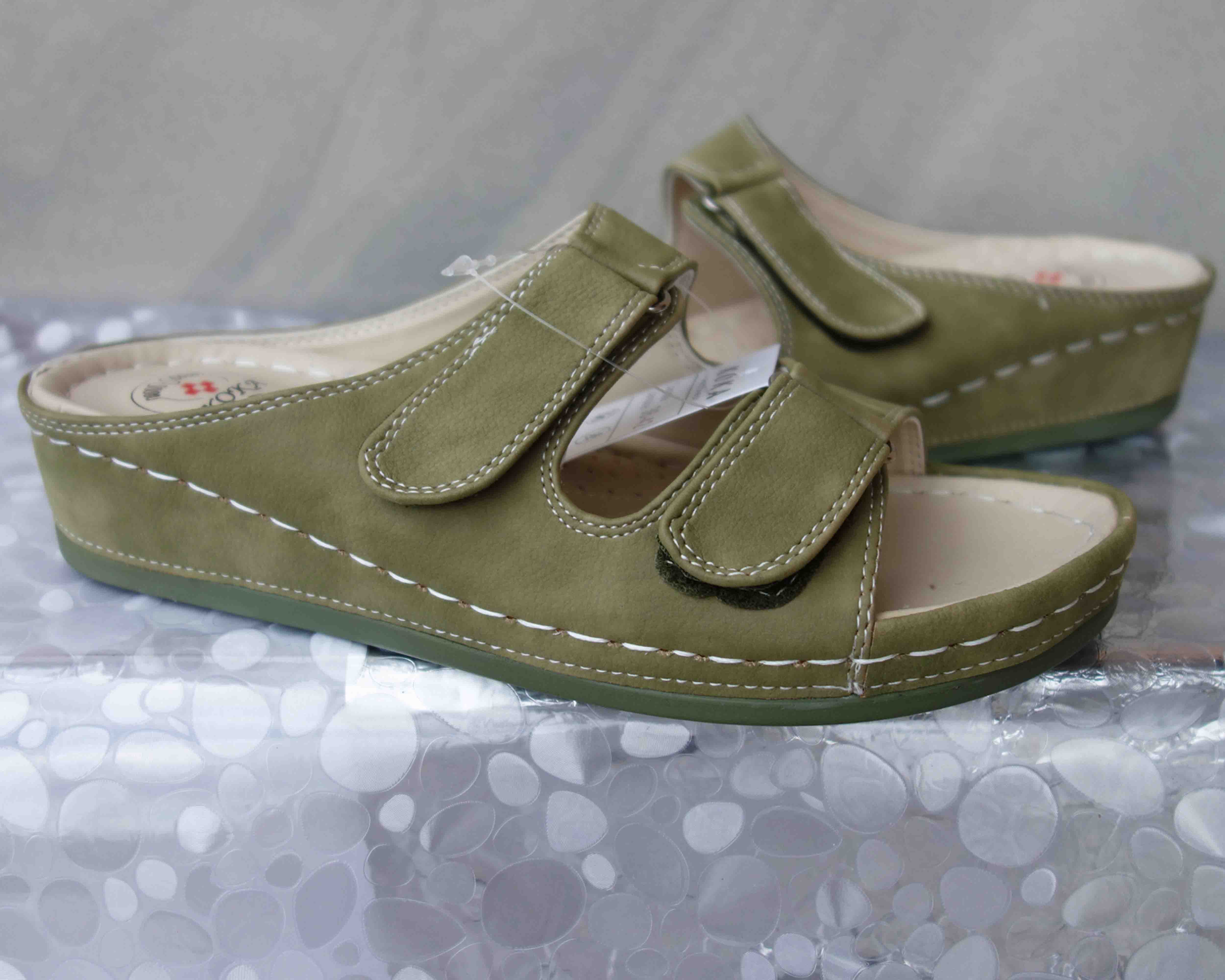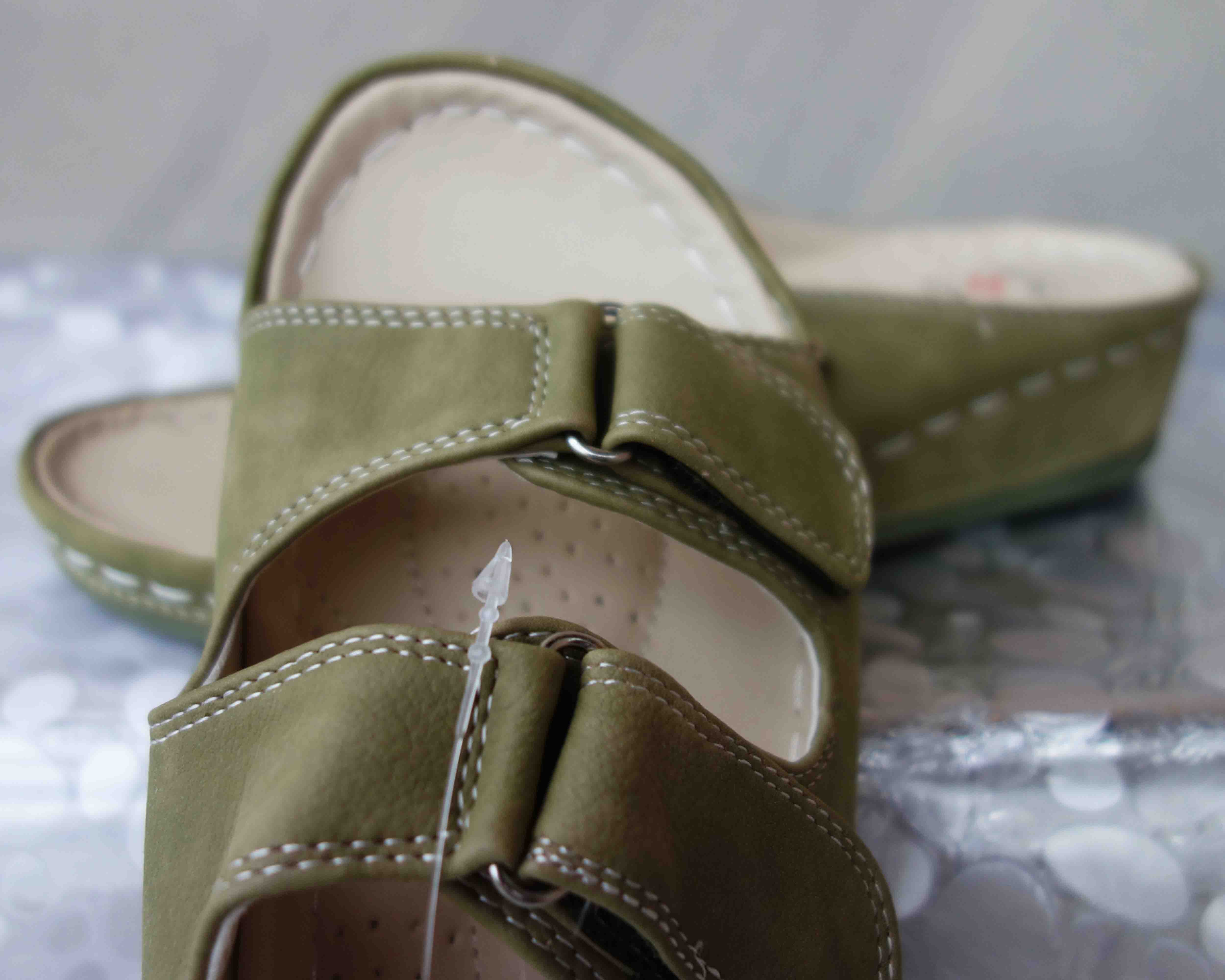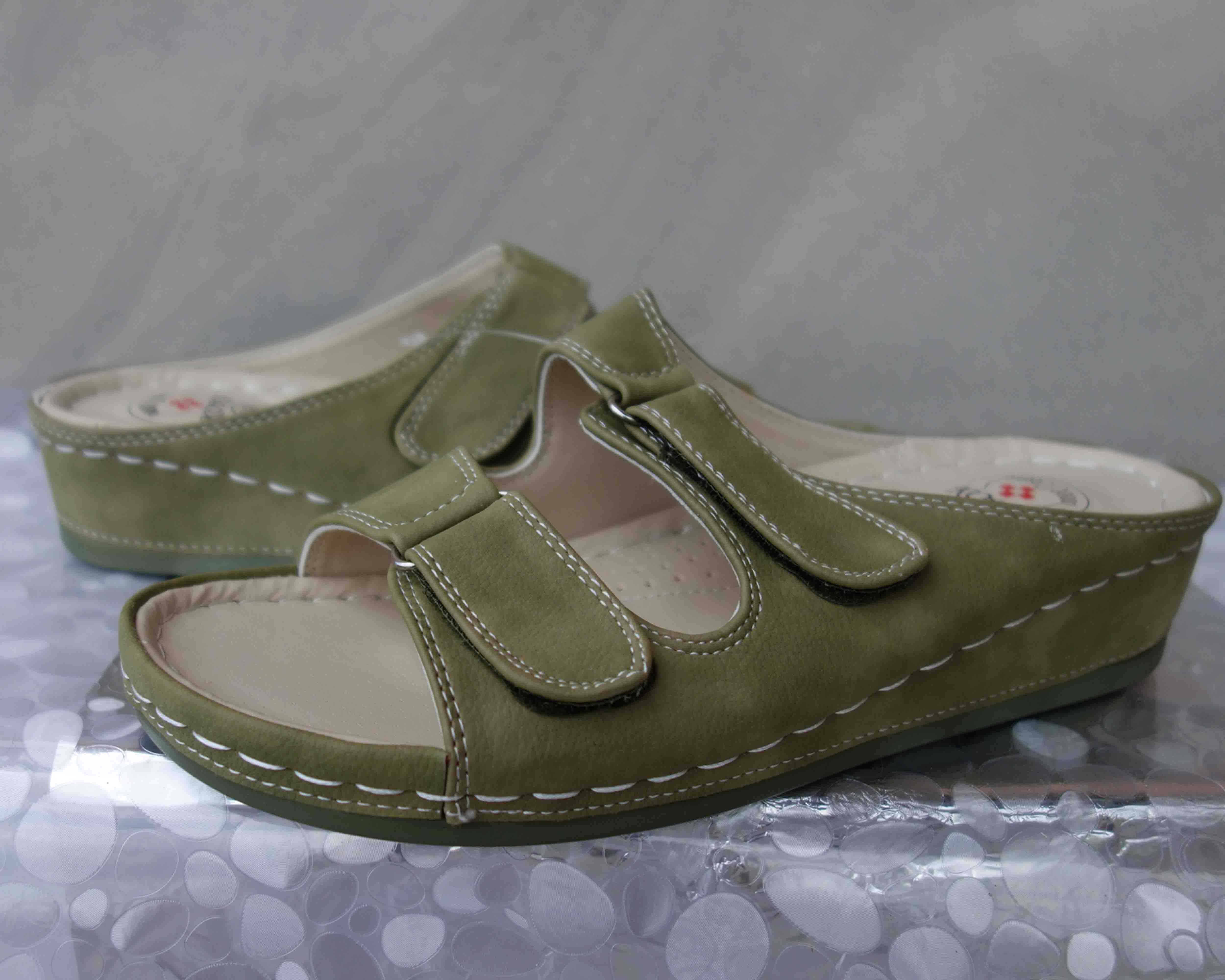 Prezentujemy Państwu ofertę na eleganckie i wygodne klapy damskie w kolorze oliwkowym. Nasze klamki zostały zaprojektowane specjalnie dla szerokich i puchnących stóp, dzięki czemu zapewniają wyjątkowy komfort noszenia. Wykonane z wysokiej jakości skóry eko, są one nie tylko przyjazne dla środowiska, ale także trwałe i odporne na długotrwałe użytkowanie.