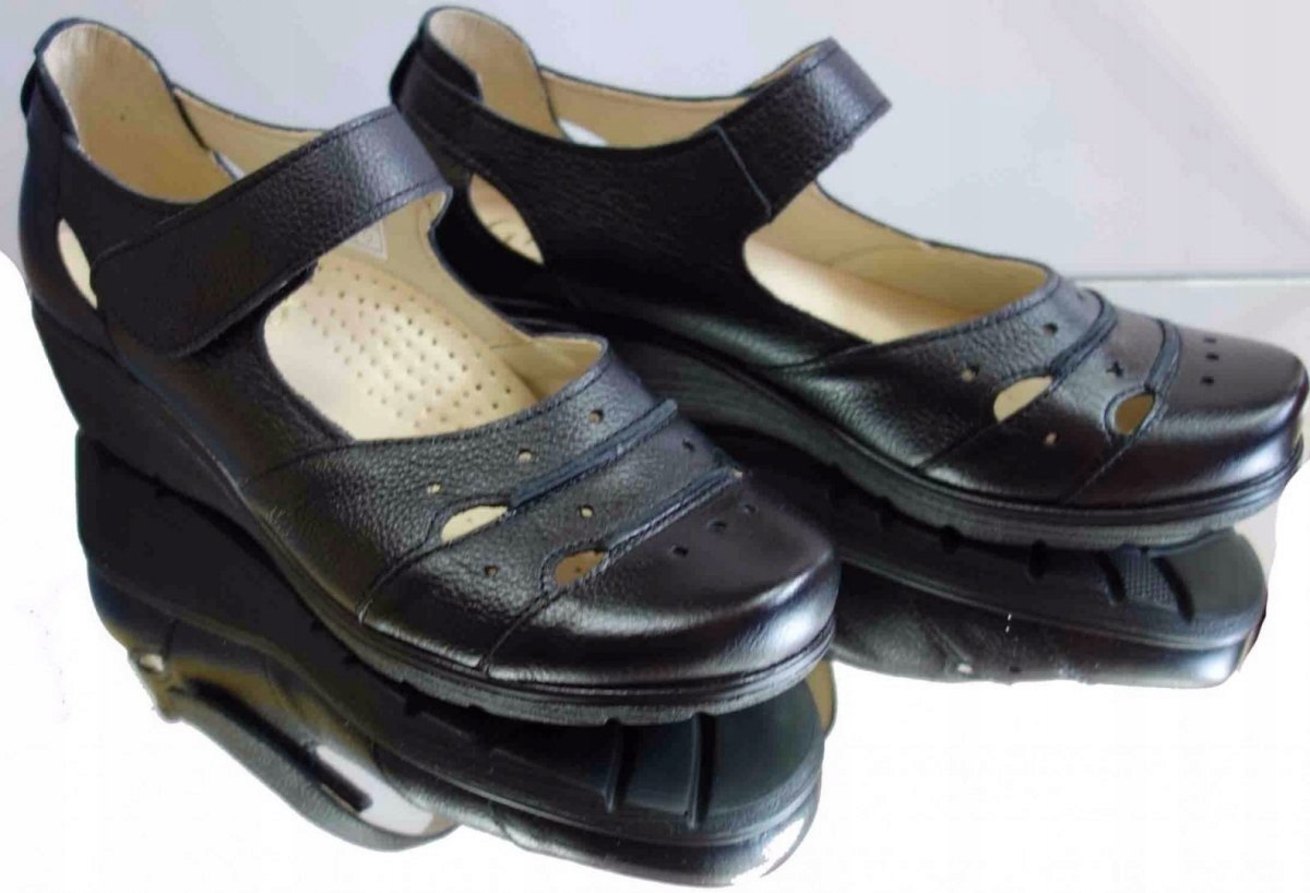 Prezentujemy Państwu wyjątkowe mokasyny damskie o oryginalnym wzorze koturna - model H. Te modne i wygodne półbuty wykonane są z wysokiej jakości skóry naturalnej w eleganckim czarnym kolorze, który doskonale oddaje jakość produktu - tak jak na zdjęciu. Wyposażone w stabilny koturn o wysokości 3,8 cm, te bujaczki są zarówno stylowe, jak i wygodne w noszeniu.