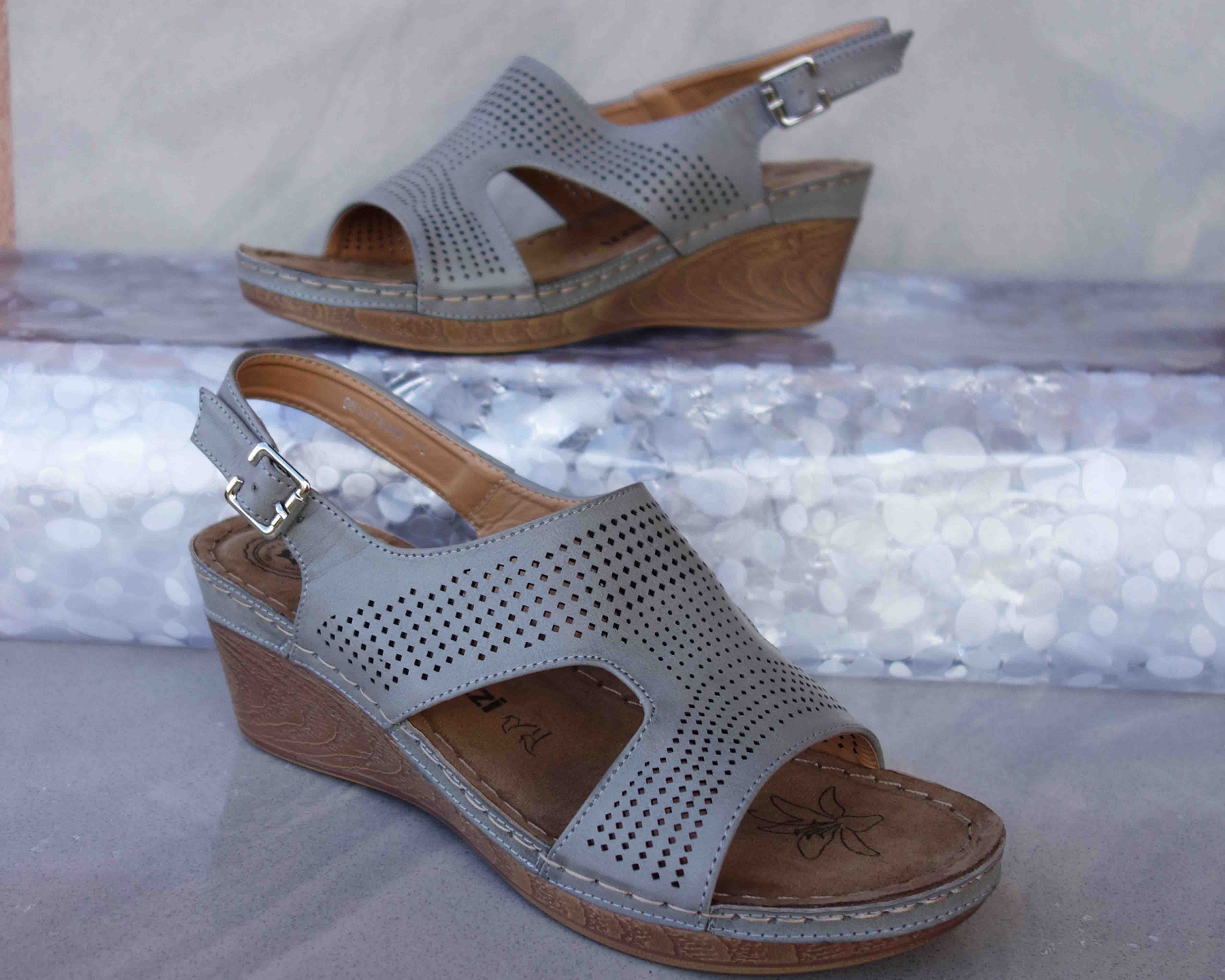 Sandały koturnowe w kolorze popielatym o wysokości 6 cm na pięknym obcasie to doskonały wybór na najbliższe lato. Wyjątkowo wygodne i eleganckie buty, które zapewnią Ci nie tylko atrakcyjny wygląd, ale także komfortowe chodzenie przez cały dzień.