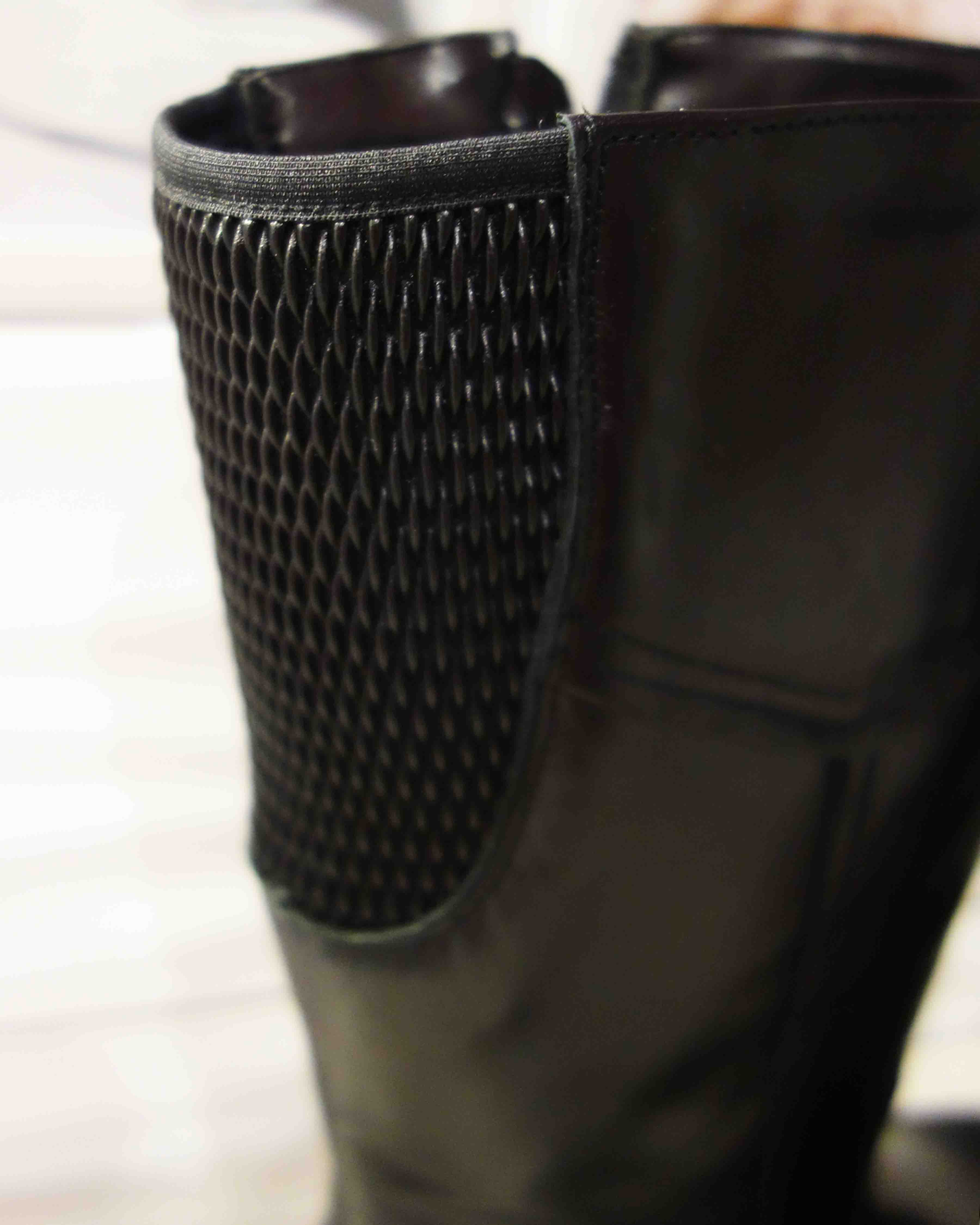 Te wyjątkowe buty cechują się wszytą gumą z tyłu, która doskonale dopasowuje się do szerszych łydek, nawet o obwodzie sięgającym 44 cm w najszerszym miejscu. Dzięki temu osiągniesz niezrównany komfort noszenia.