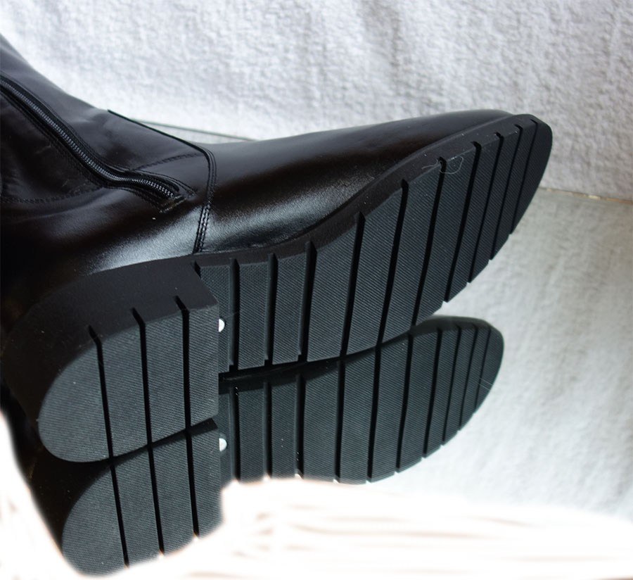 Kozaki dostępne w rozmiarze 45, posiadają długość wkładki wynoszącą 28 cm. Ich uniwersalny kolor czarny idealnie pasuje do różnych stylizacji - zarówno do pracy jak i na bardziej formalne wyjścia. Ten model kozaków świetnie sprawdzi się na co dzień oraz na wieczorowe wyjścia.