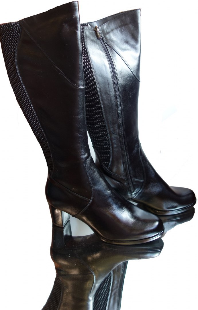 Wysokość cholewki wynosi około 40 cm, a gumka wszyta z tyłu dodatkowo pozwala na rozciągnięcie cholewki o 2 cm. Obwody mierzone są na luzie, bez nadmiernego ucisku.