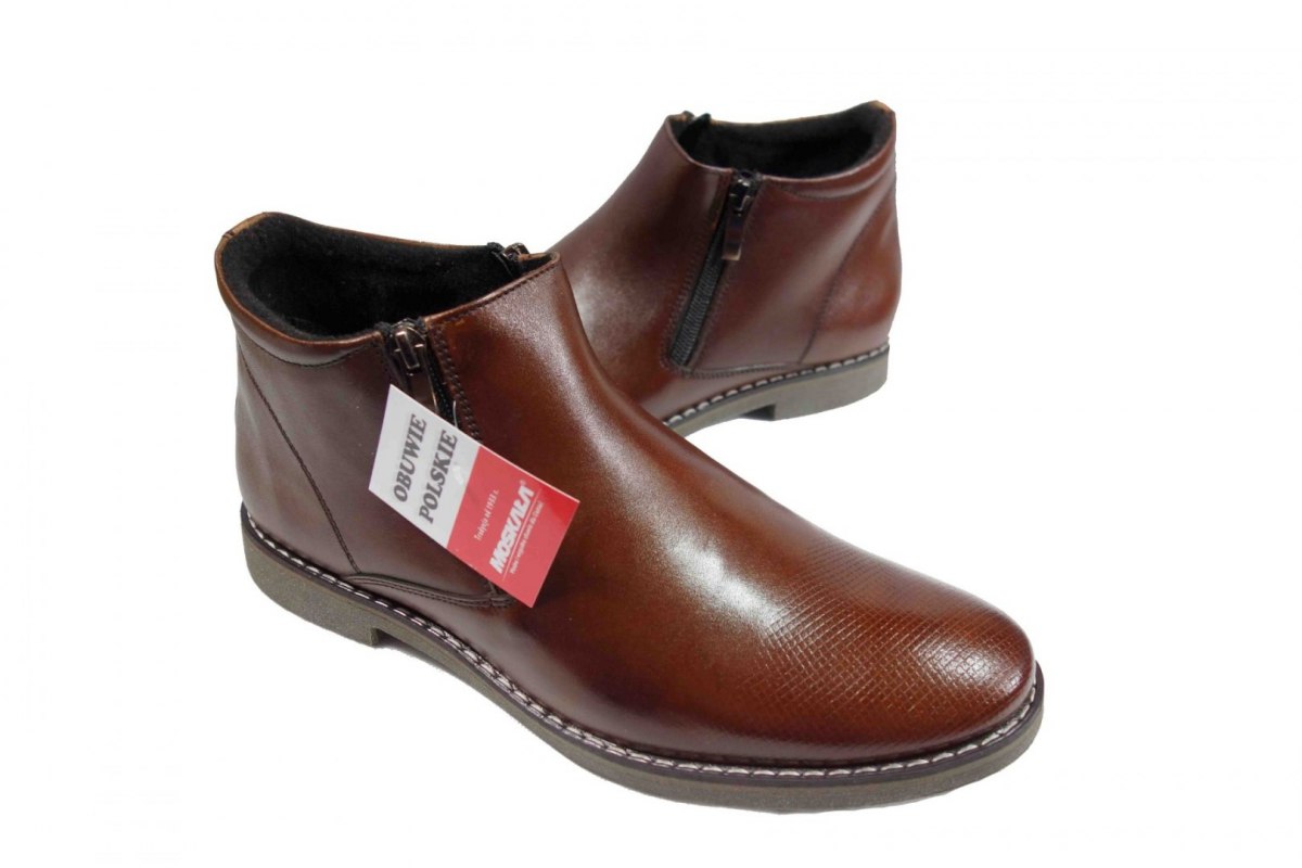 Te buty męskie są zapinane na wygodne zamki znajdujące się po obu stronach cholewki, co ułatwia zakładanie i zdejmowanie butów. Dodatkowo, buty są szersze oraz wyższe na podbiciu, co zapewnia jeszcze większy komfort podczas długotrwałego noszenia.