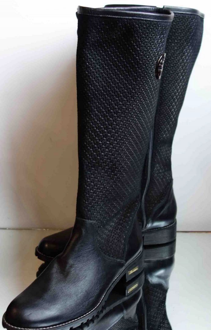 Cholewka charakteryzuje się wąskim obwodem o wymiarze 23-24 cm, co zapewnia precyzyjne dopasowanie do stopy. Obwód łydki na wysokości 19 cm wynosi 30-32 cm, natomiast na wysokości 30 cm mieści się w zakresie 41-42 cm. Kozaki mają cholewkę o wysokości 37 cm. Długość wkładki dla rozmiaru 40 to 26 cm.