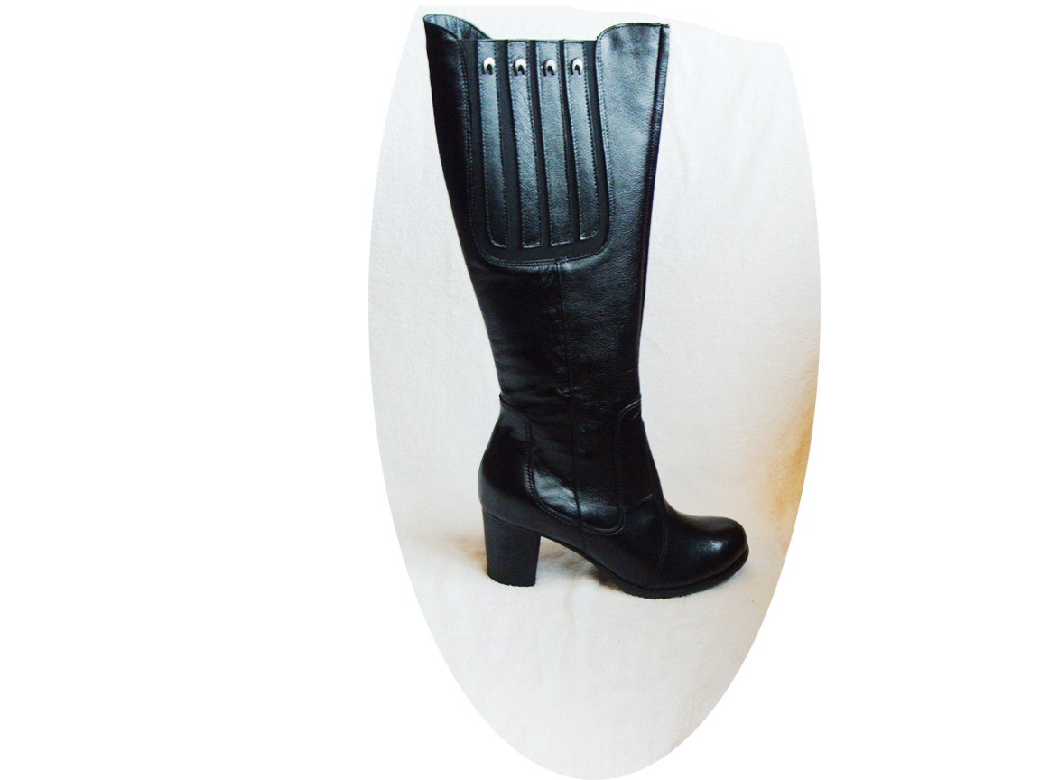 Klasyczne kozaki o szerokiej cholewce, dostępne w rozmiarach 43 i 44. Wykonane z miękkiej skóry naturalnej, zapewniają wygodę i komfort noszenia. Modne zdobienia z delikatnymi gumami po bokach sprawiają, że buty można dopasować do szerszych obwodów nawet do 45 cm.