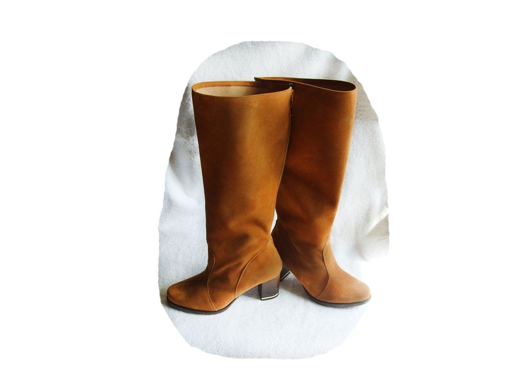 Prezentujemy bardzo modne i wygodne oryginalne letnie kozaczki z wysoką cholewką, idealne na wiosnę. Te kozaki są wykonane z miękkiego pulapu w kolorze kamelowo-rudym, który jest łatwy w utrzymaniu czystości. Doskonale sprawdzą się w okresie wiosenno-jesiennym, są miękkie i przyjazne dla stopy, a także stabilne dzięki obcasowi o wysokości 6,5 cm.