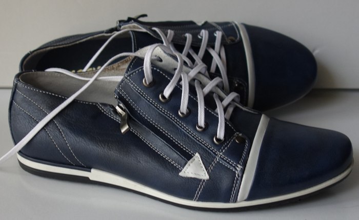 Prezentujemy męskie półbuty w kolorze granatowym. Te modne i wygodne oryginalne buty są przeznaczone dla każdego mężczyzny, niezależnie od wieku. Wykonane z miękkiej skóry licowej zarówno na zewnątrz, jak i wewnątrz, zapewniają idealny komfort zmęczonym stopom.