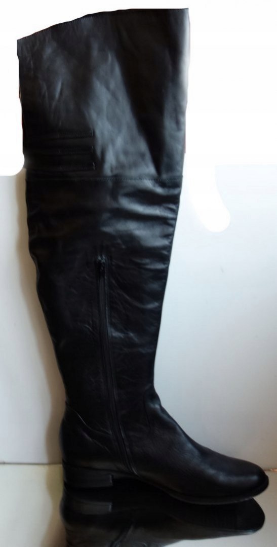 Nowoczesne i eleganckie muszkieterki w kolorze czarnym, idealne dla kobiet z szerokimi łydkami. Wykonane ze skóry naturalnej, gwarantują trwałość i wygodę noszenia. Ich unikalny design sięga ponad kolano, dodając charakteru każdej stylizacji.