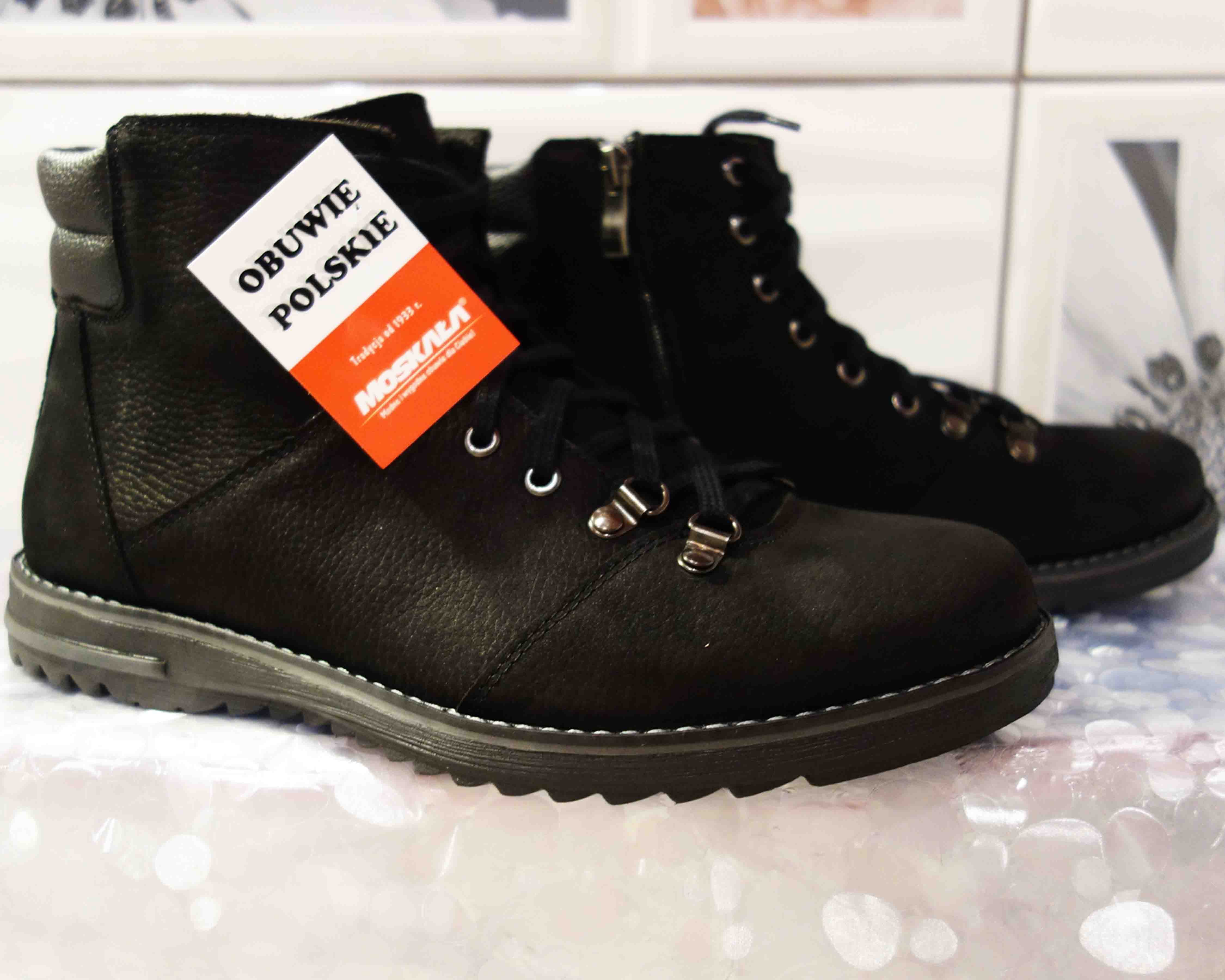 Te eleganckie sztyblety trzewiki wykonane są z wysokiej jakości skóry naturalnej nubuk, zapewniając niezrównany komfort. Ocieplone delikatnym polarkiem, buty te są idealne na chłodne dni. Zaprojektowane przez polskiego producenta - firmę MOSKAŁA, gwarantują one nie tylko najwyższą jakość, ale także stylową prezencję.