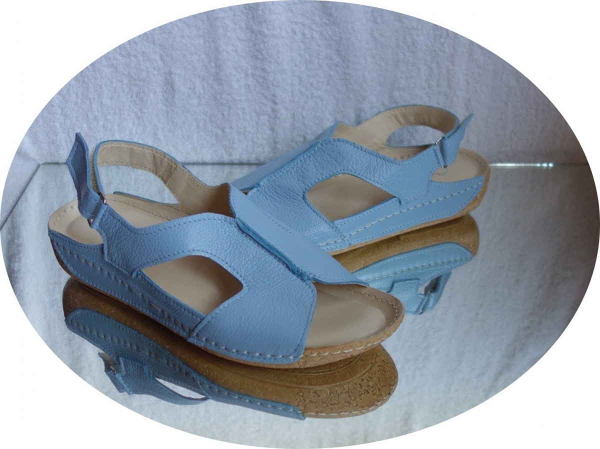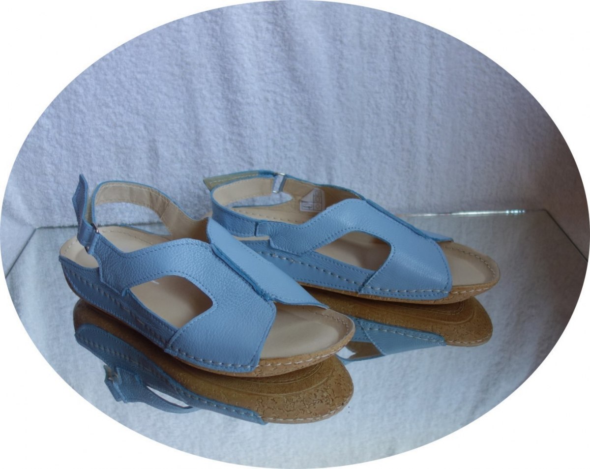 Nowe DAMSKIE skórzane sandałki bez pięt, niebieskie, rozmiar 37