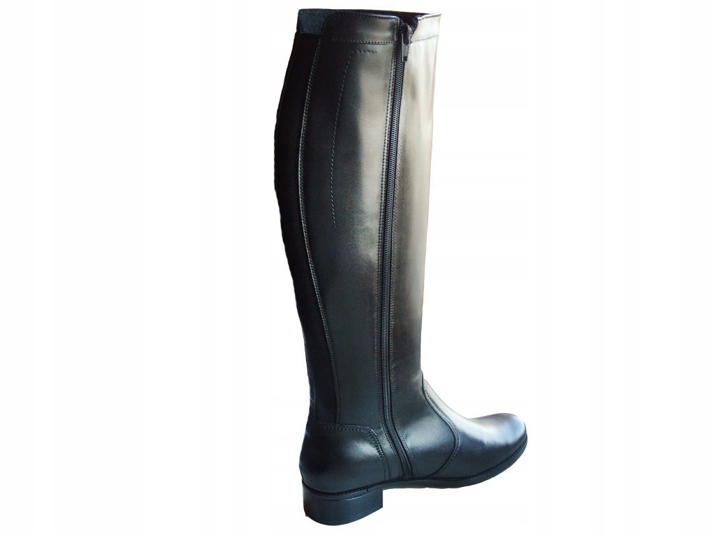 Ten model kozaków to połączenie klasyki, elegancji i wygody. Stabilny, szeroki płaski obcas o wysokości 3 cm zapewni Ci komfortową postawę przez cały dzień.