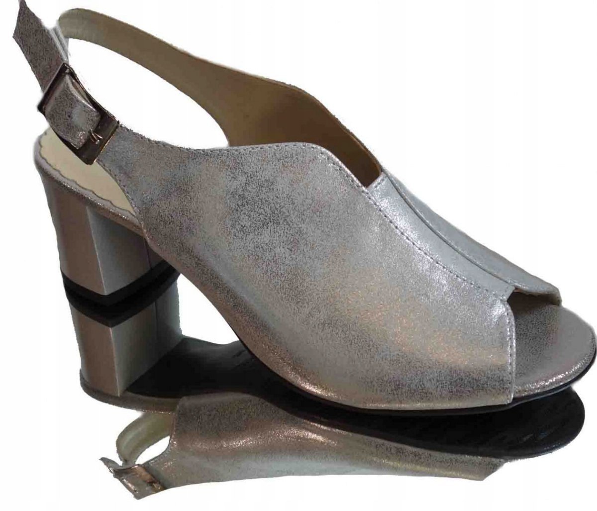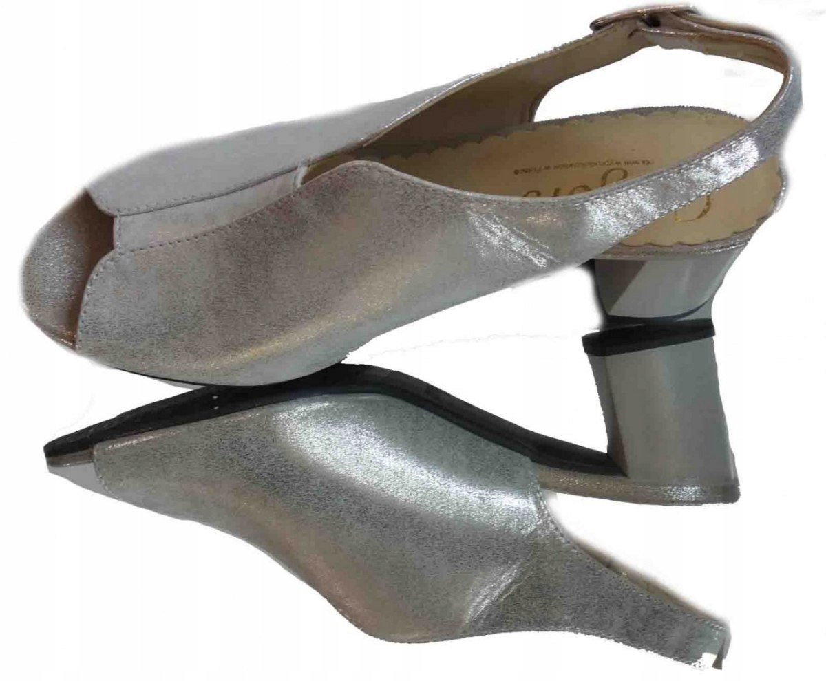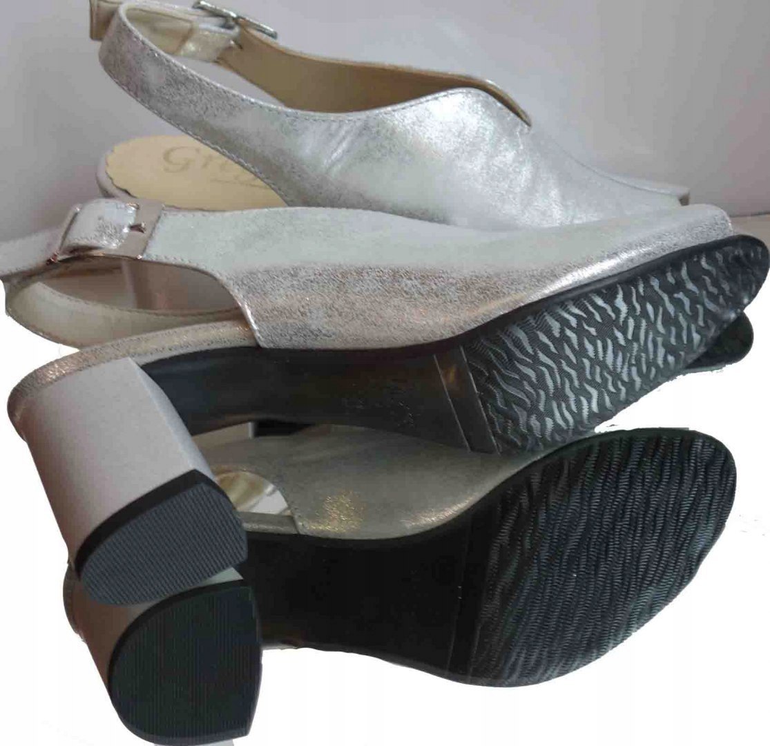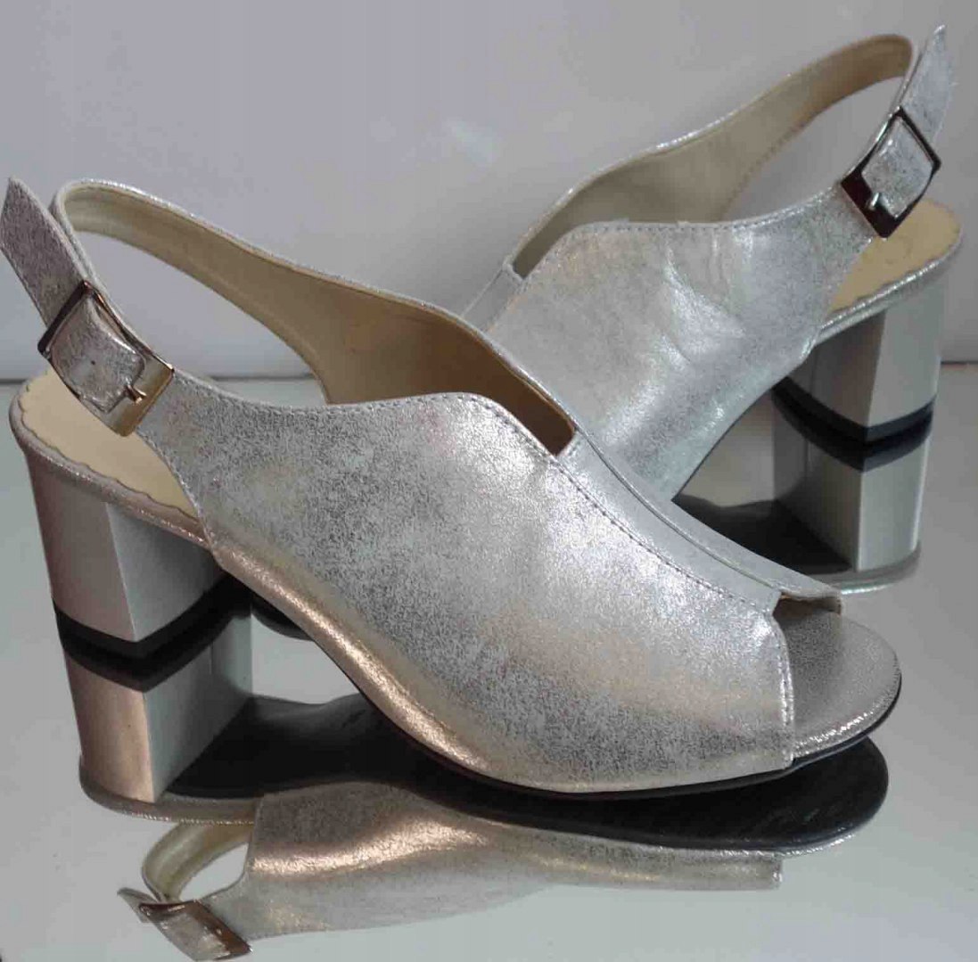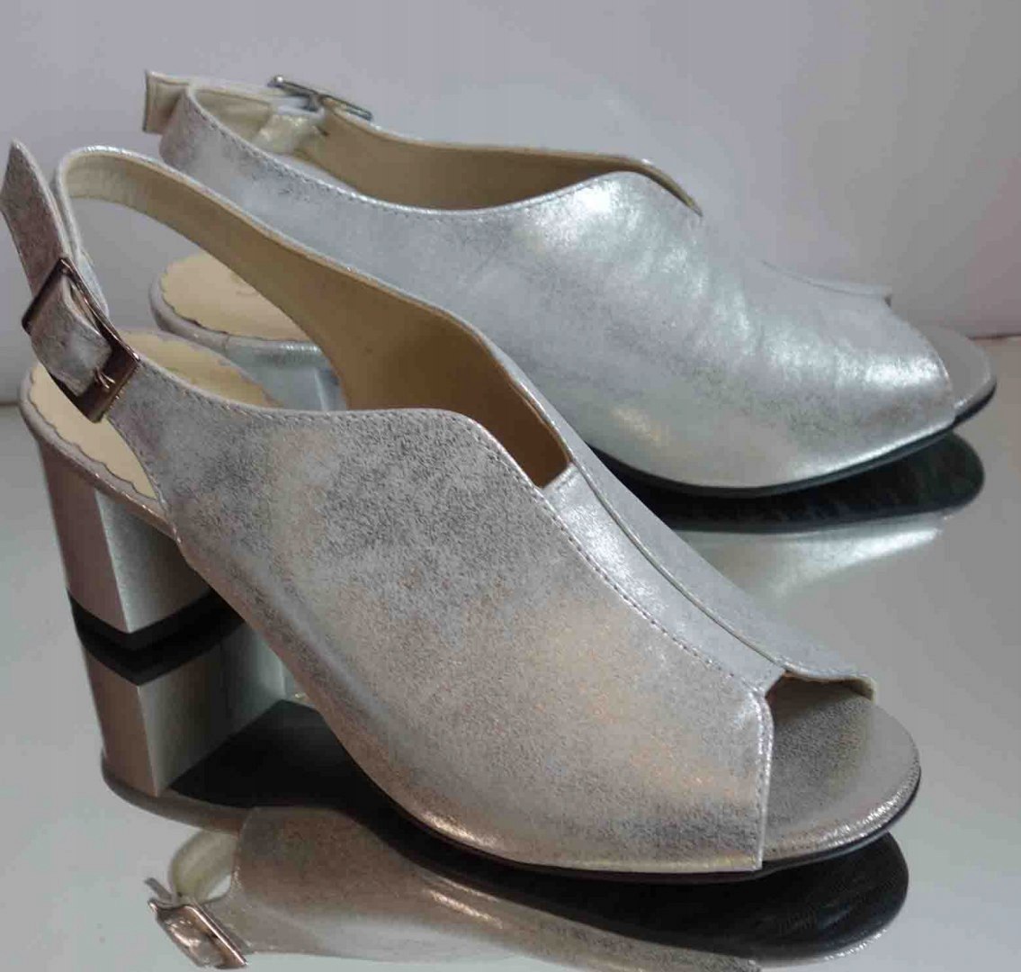 Sandałki skórzane FASHION, obcas tęg.G/H, srebro, 38