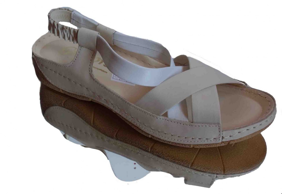 Wyjątkowo stylowe i wygodne sandały to absolutny hit tego sezonu! Idealne dla Pań, które cenią sobie szyk i elegancję. Wykonane z wysokiej jakości skóry naturalnej w kolorze bezowym z delikatnymi akcentami bieli. Te modne sandały są niezwykle lekkie i wygodne, co zapewniają szeroka, stabilna koturna o wysokości 3 cm. Dodatkowo, środek buta jest miękko wyścielany skórą, zapewniając najwyższy komfort noszenia.