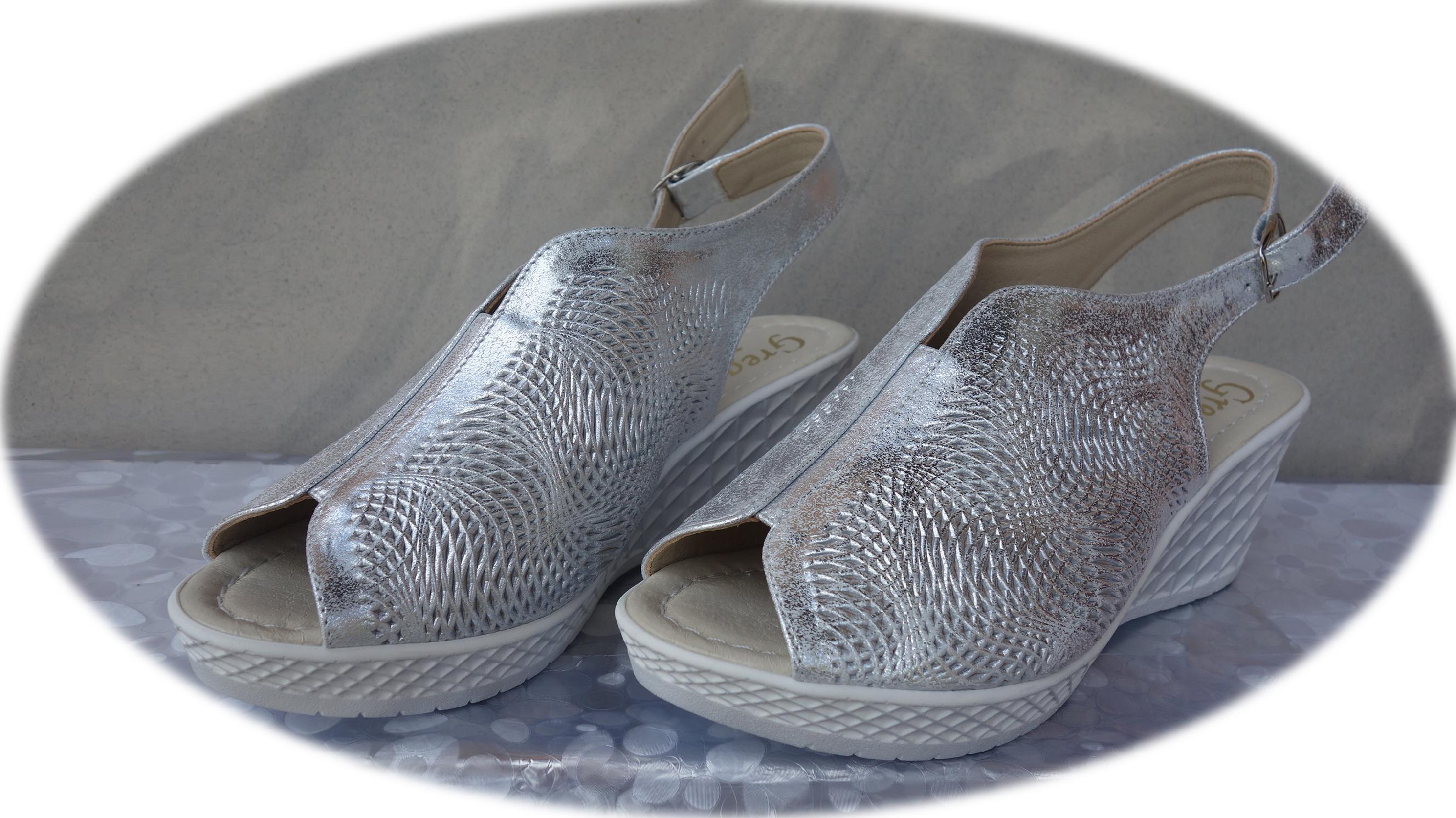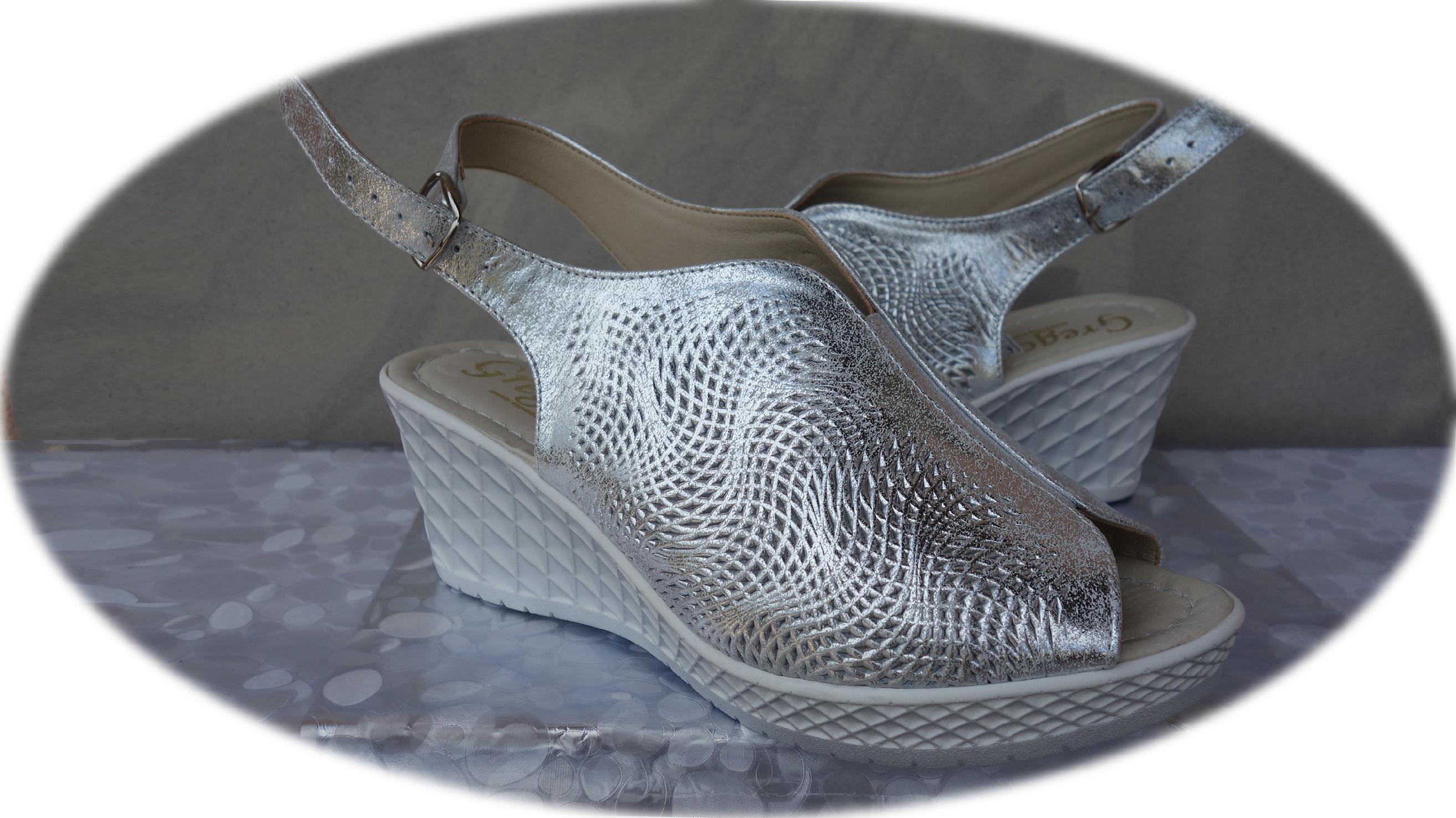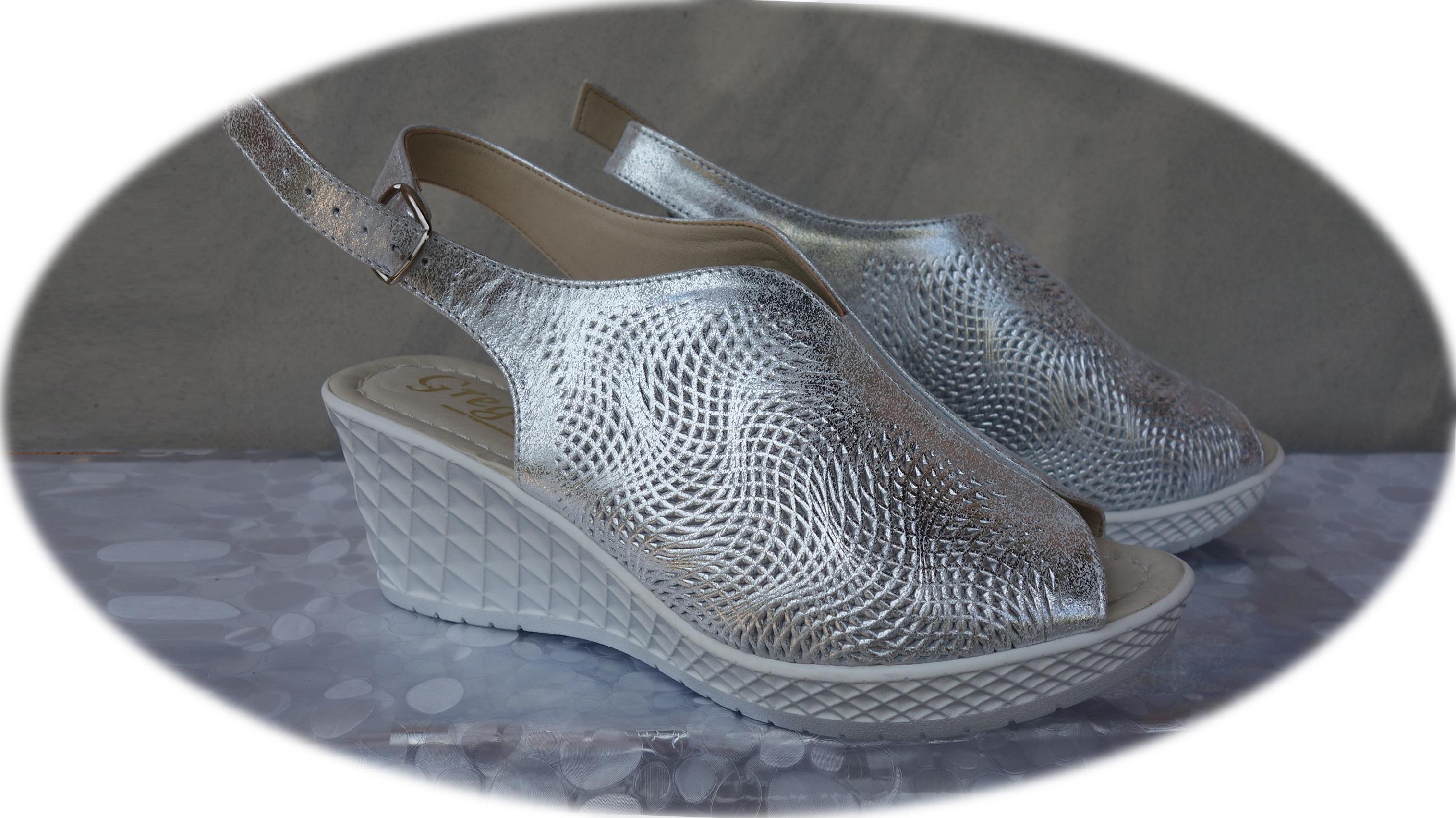 Eleganckie Sandały Damskie Srebrne z Koturnem, Wykonane z Naturalnej Skóry, Rozmiar 40 - Polski Producent