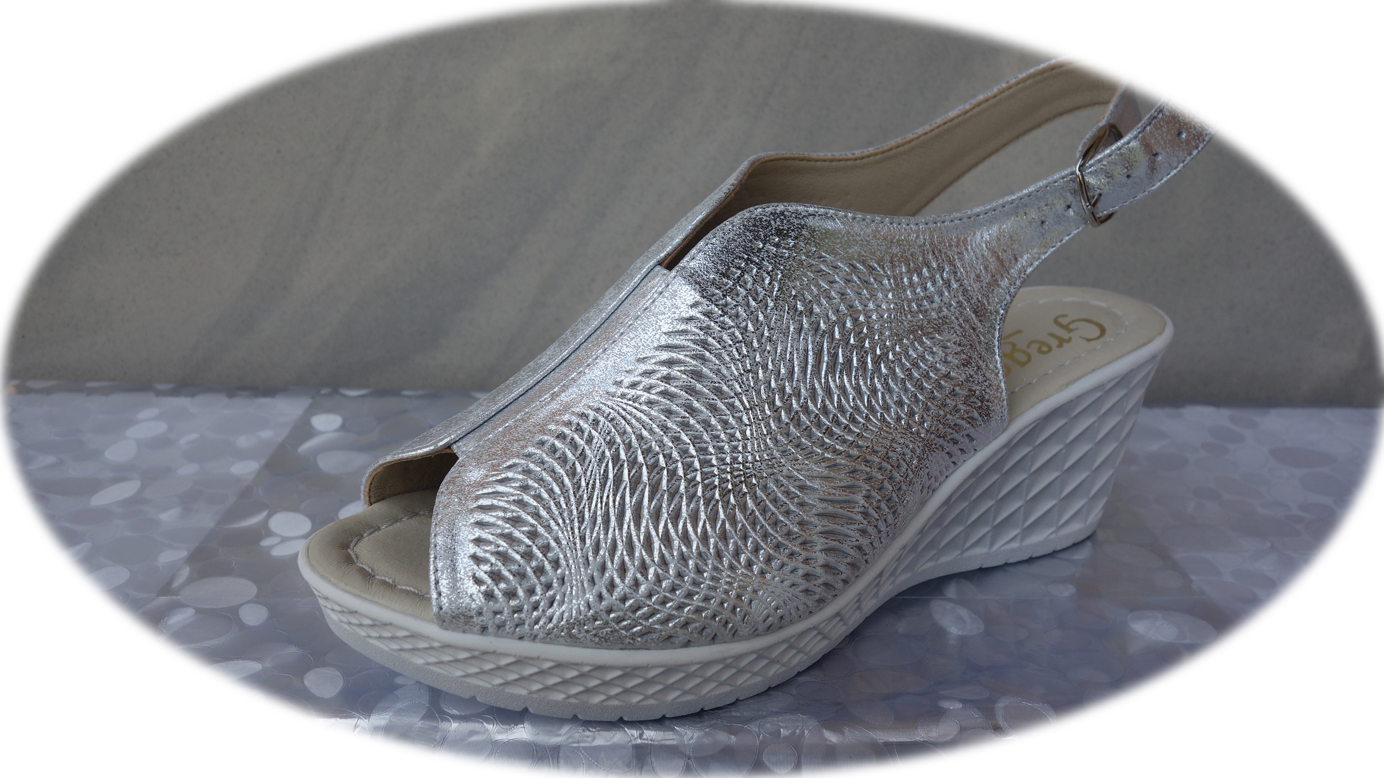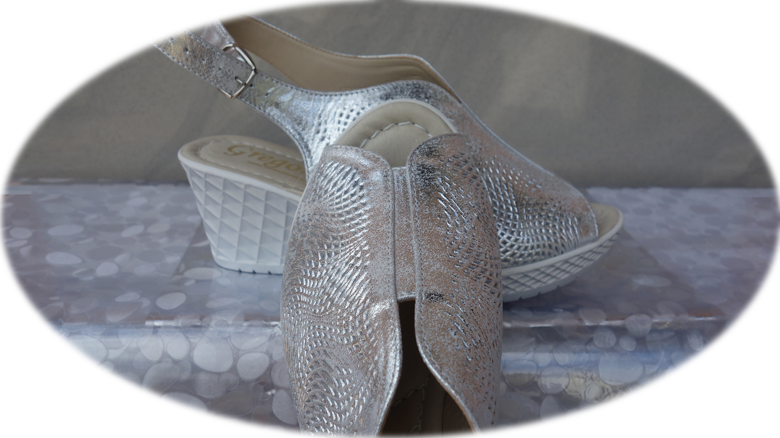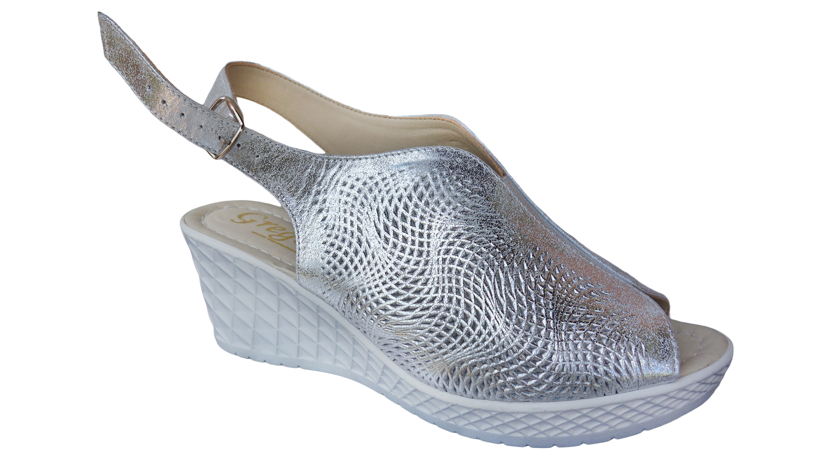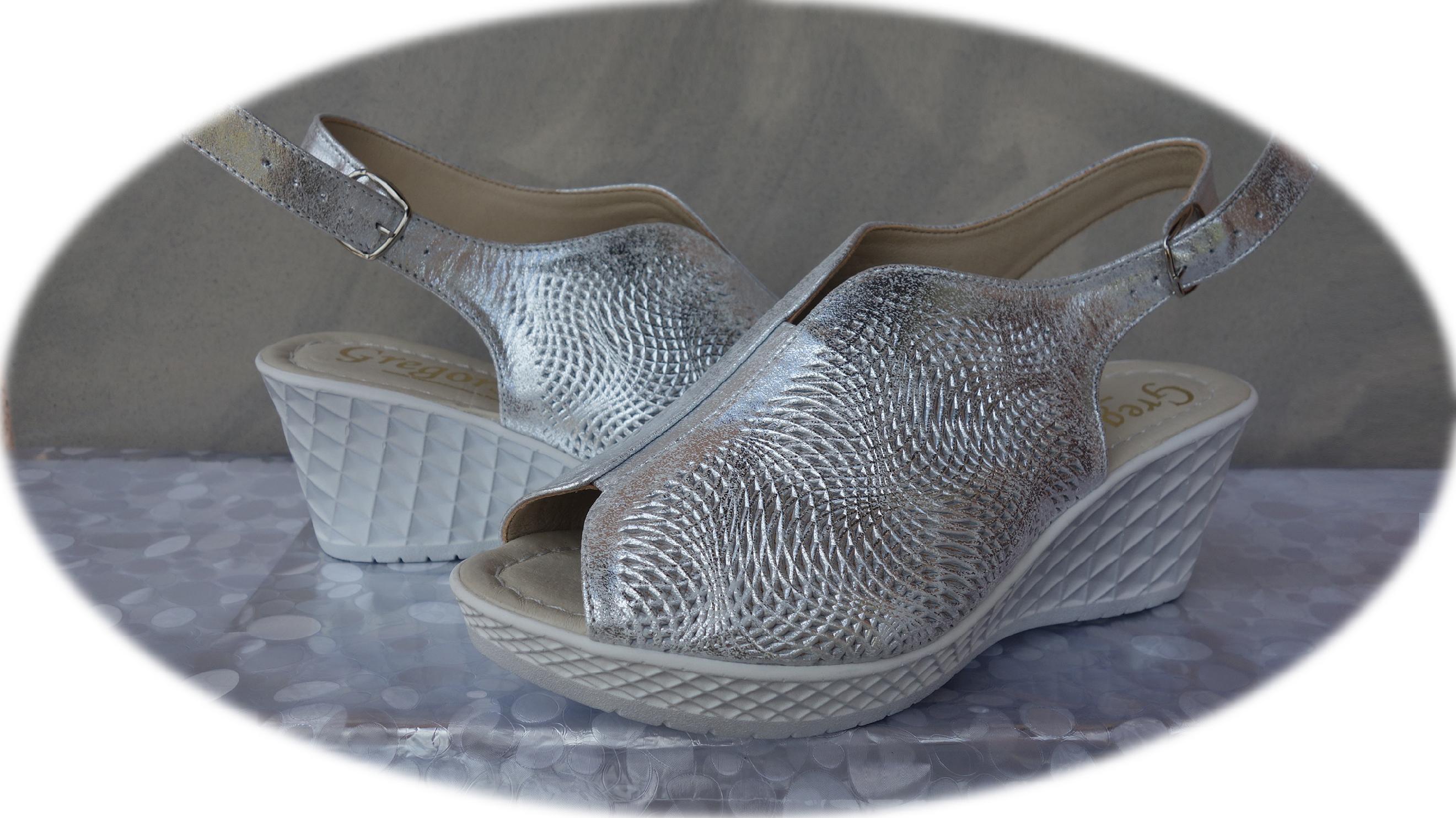 Eleganckie Sandały Damskie Srebrne z Koturnem, Wykonane z Naturalnej Skóry, Rozmiar 40 - Polski Producent