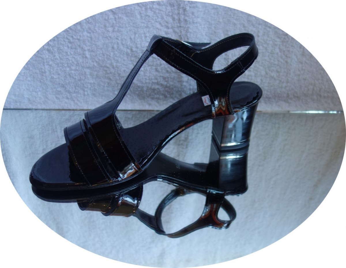 sandały obcas SKÓRA czarny lakier teg 2x H 35