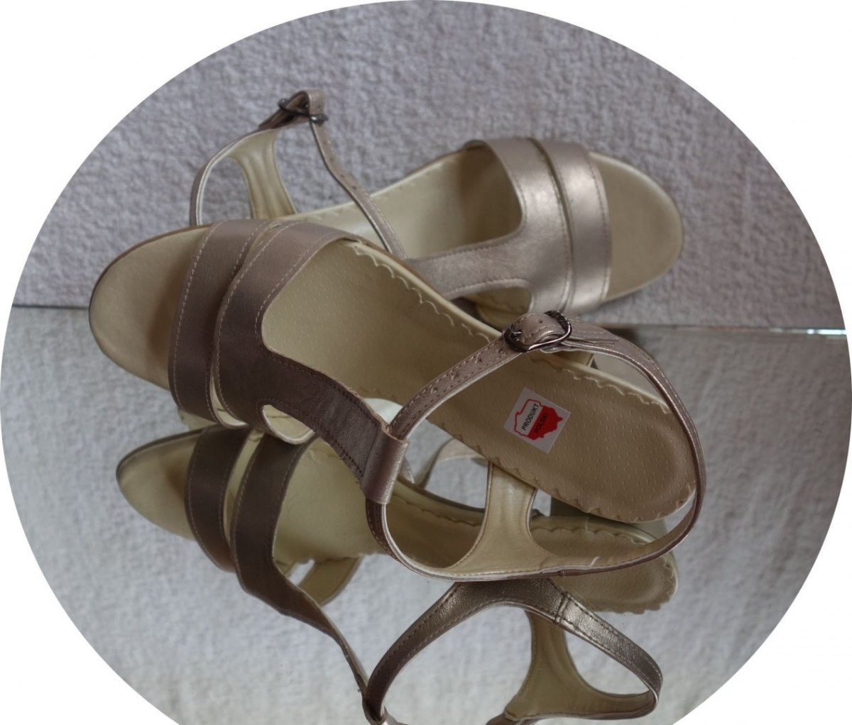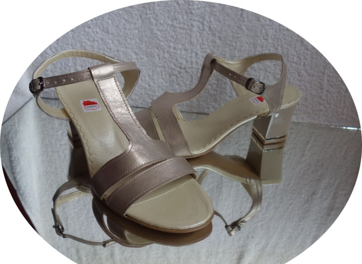 Bądź gotowa na długie spacery w naszych sandałach na obcasie SKÓRA pastelowe złoto. Ten elegancki damski model jest nie tylko modny, ale także niezwykle wygodny dzięki stabilnemu obcasowi o wysokości 6 cm. Wykonane z wysokiej jakości skóry naturalnej, te sandały w kolorze złota są zarówno szerokie w palcach, jak i wysokie na podbiciu, zapewniając komfort i wygodę noszenia.