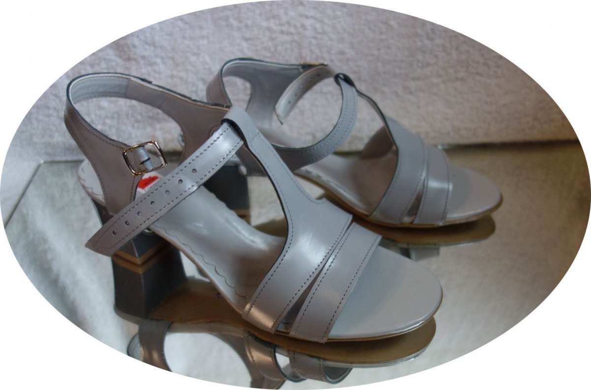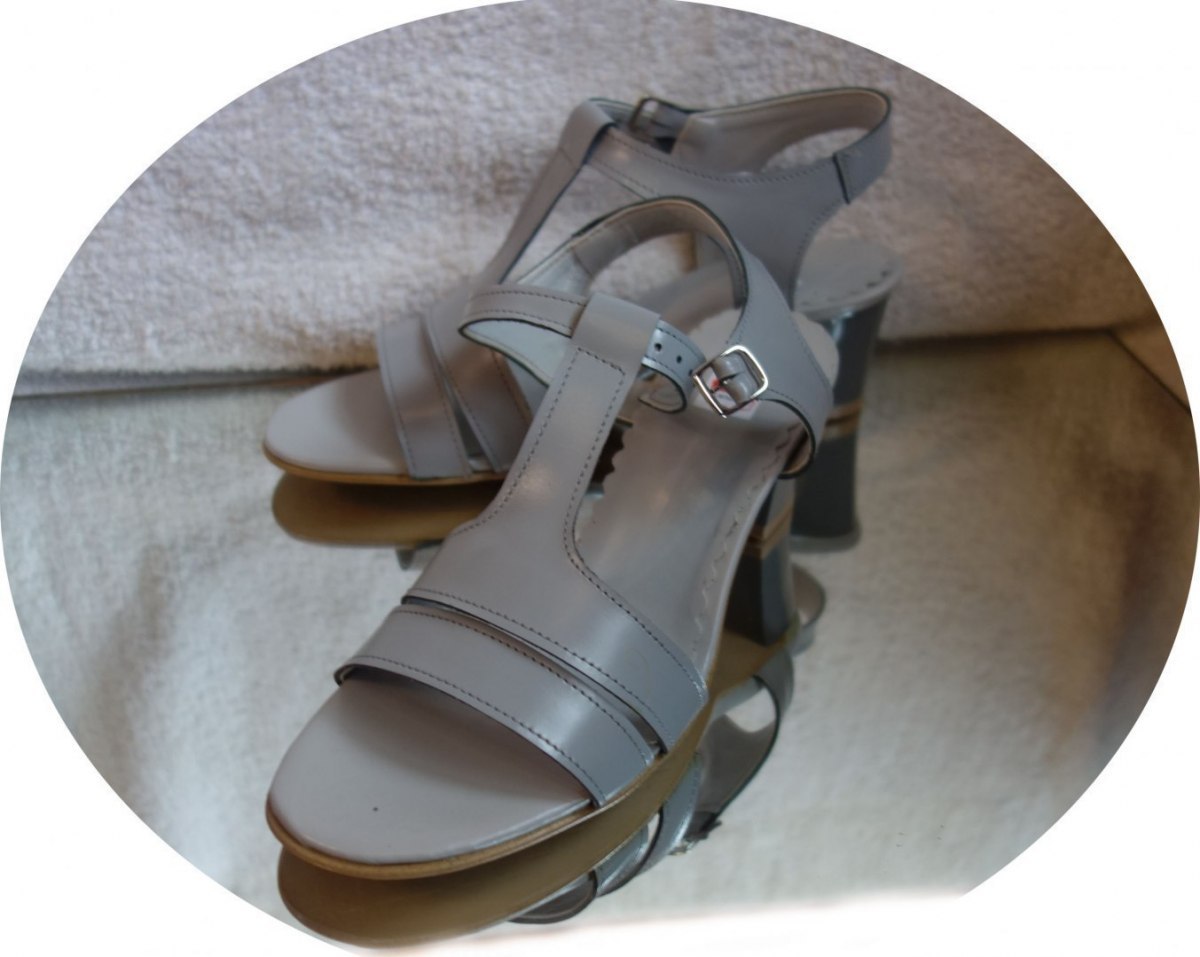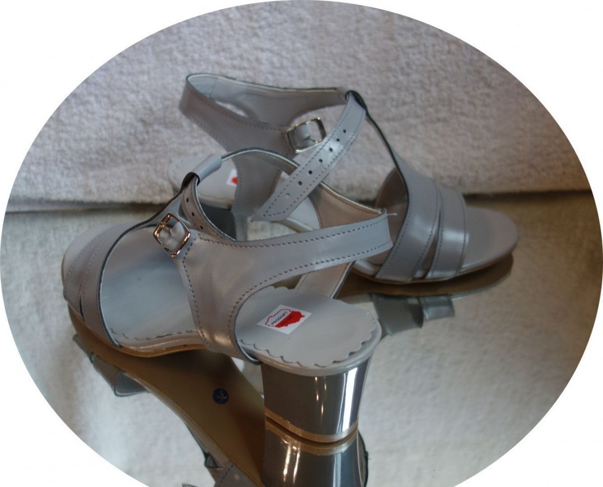 Sandały obcasowe z naturalnej skóry, jasny popiel, teg H 38