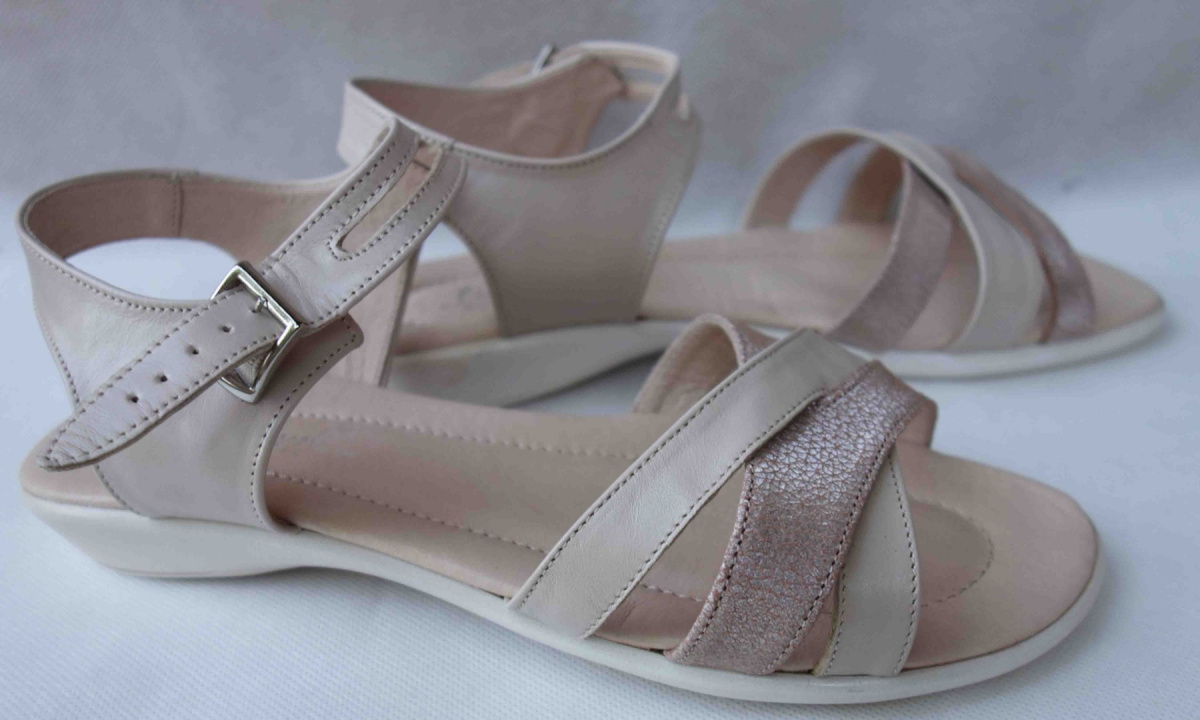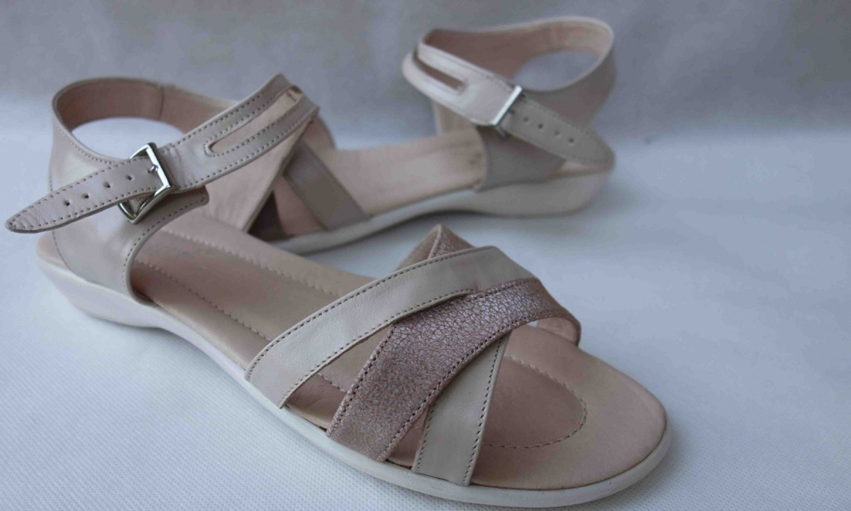 Nasza oferta obejmuje stylowe sandały skórzane beżowego koloru, o szerokości H, w rozmiarze 43. Ten komfortowy obuwie jest miłe dla kobiecych stóp, które mają podbicie wysokie i szeroką stopę. Wykonane w całości ze skóry naturalnej, sandały są trwałe i zapewniają wygodę przez cały dzień.