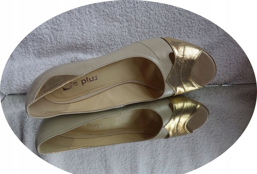 Nowe Sandały skórzane H tęgość 44 - beżowe (8cm)
