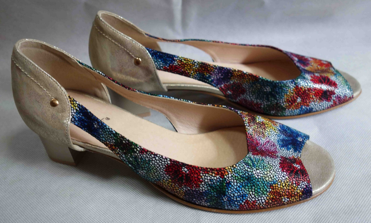 Sandały Skórzane Kwiaty Tęgość G1/2 43 to modne, lekkie i wygodne obuwie damskie idealne na co dzień. Wykonane w całości ze skóry licowej, te sandały gwarantują nie tylko trwałość, ale także komfort noszenia. Ich specjalna konstrukcja zapewnia szersze palce oraz tęgość G1/2, zwiększając przestrzeń dla stopy.