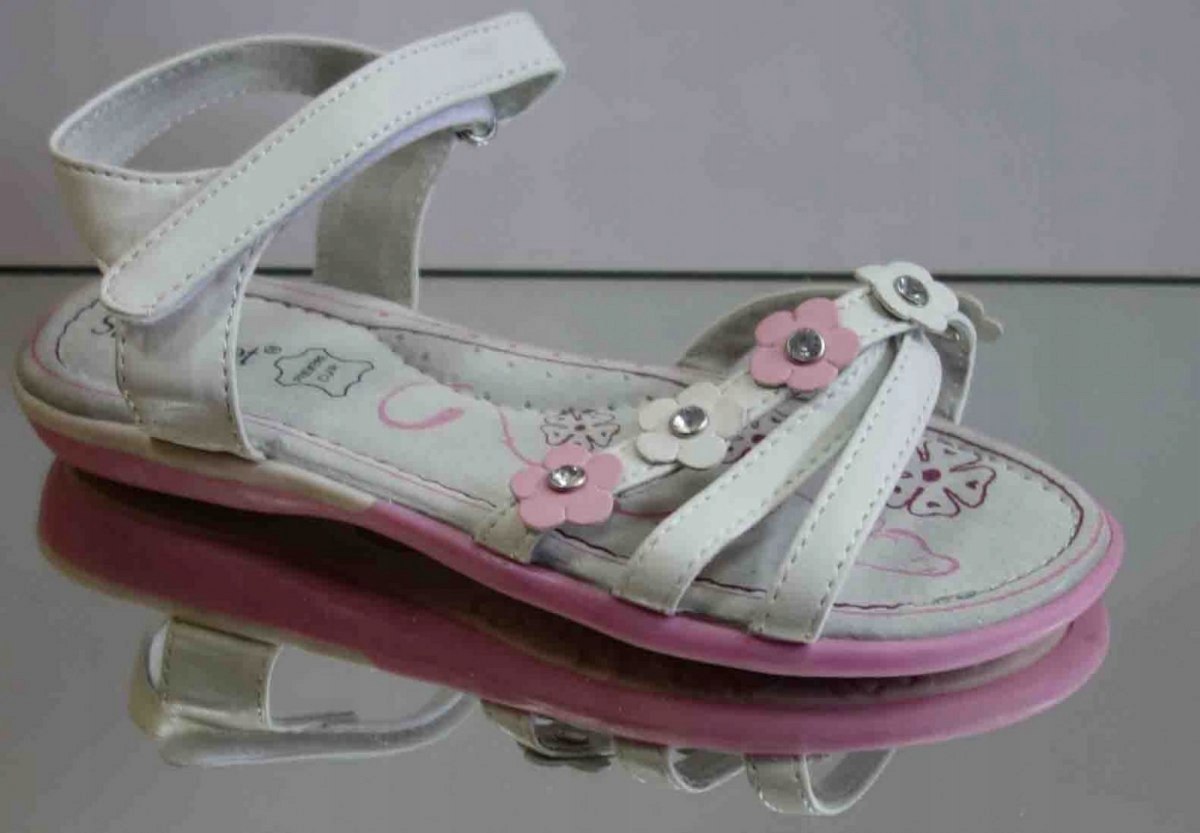 Sandały Skórzane Na Rzepy Białe Róż - 32