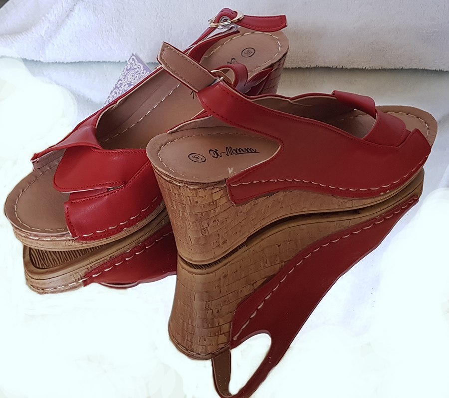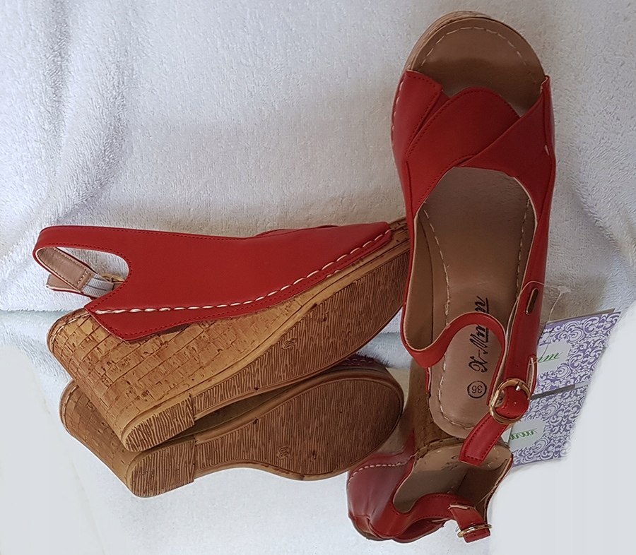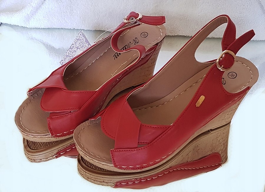 Oferujemy modne i wygodne sandały Vintage Czerwone Koturn 8cm dla kobiet, które cenią sobie ponadczasowy szyk. Wykonane ze starannie dobranego skóry ekologicznej w kolorze czerwonym, te sandały zapewnią Ci stabilność i niezrównaną wygodę na każdym kroku.