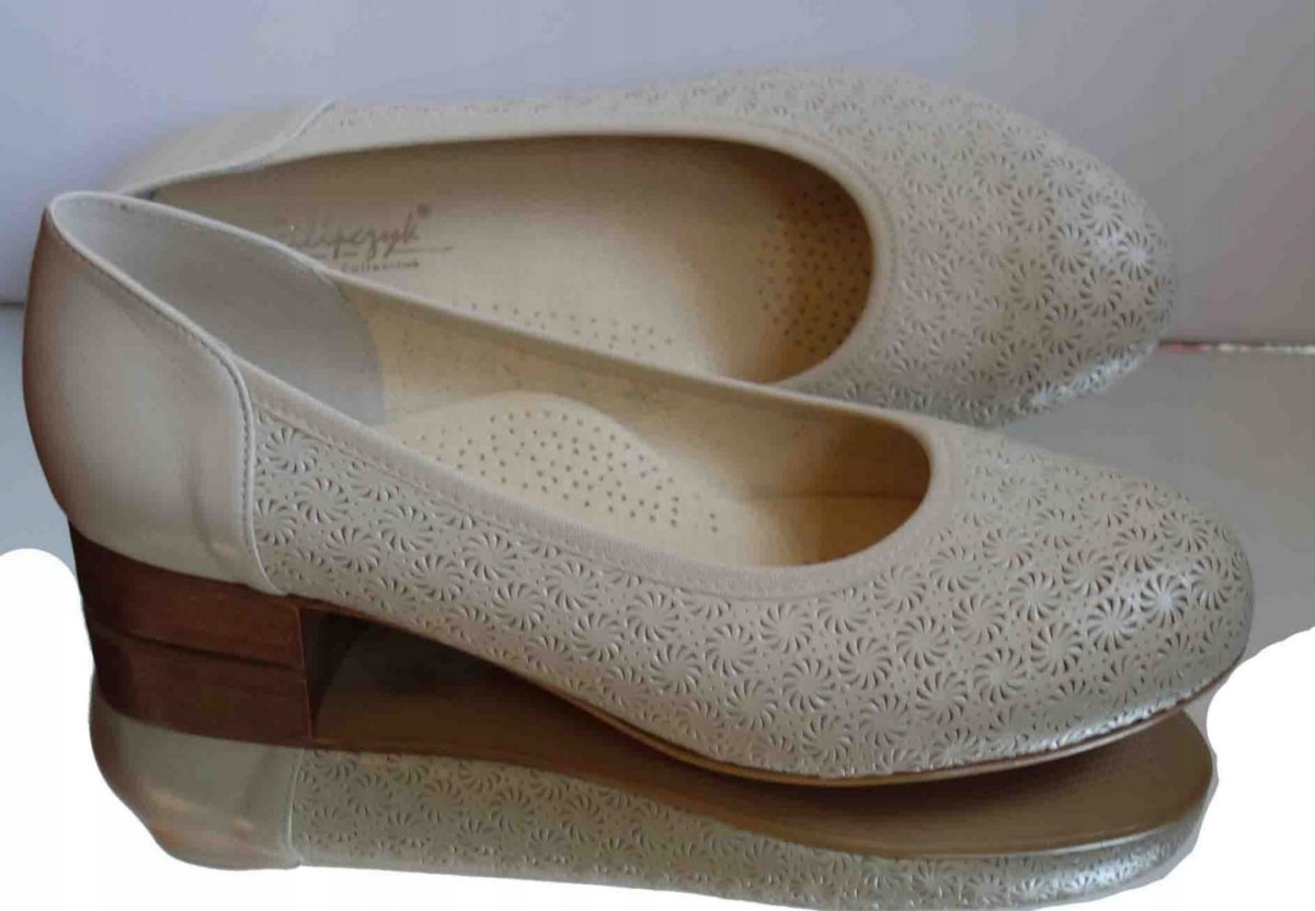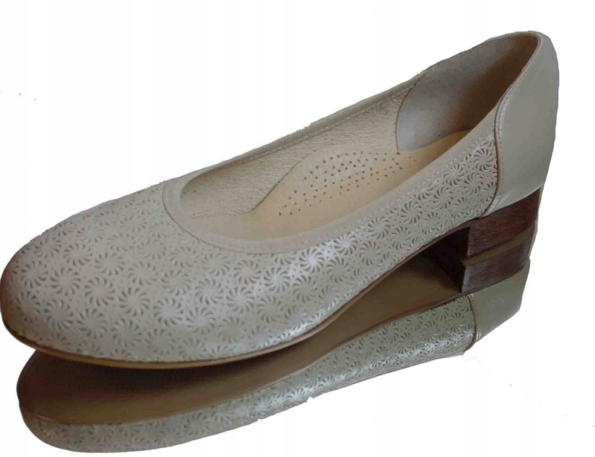 SKÓRZANE BALETKI beż azurowe tęgość H nr 45