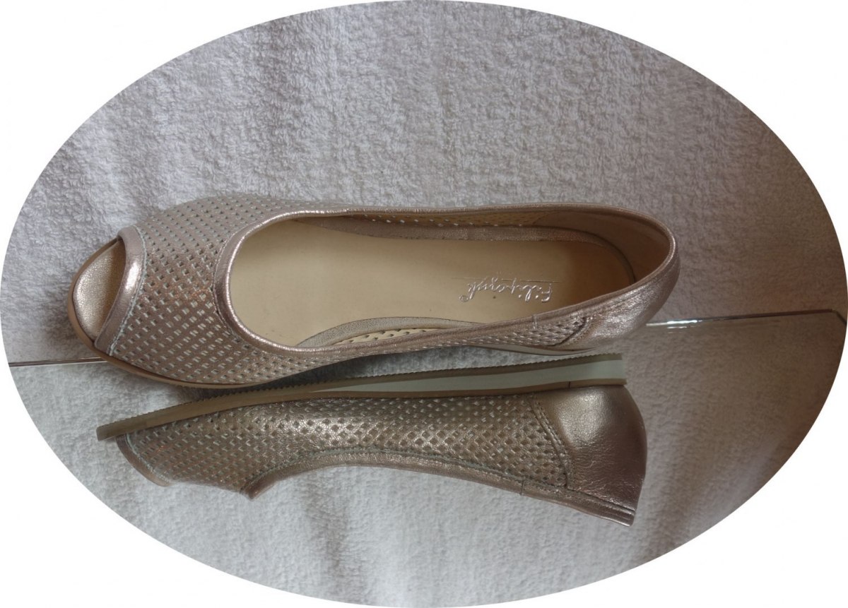SKÓRZANE BALETKI złoto azurowe tęgość H nr 42