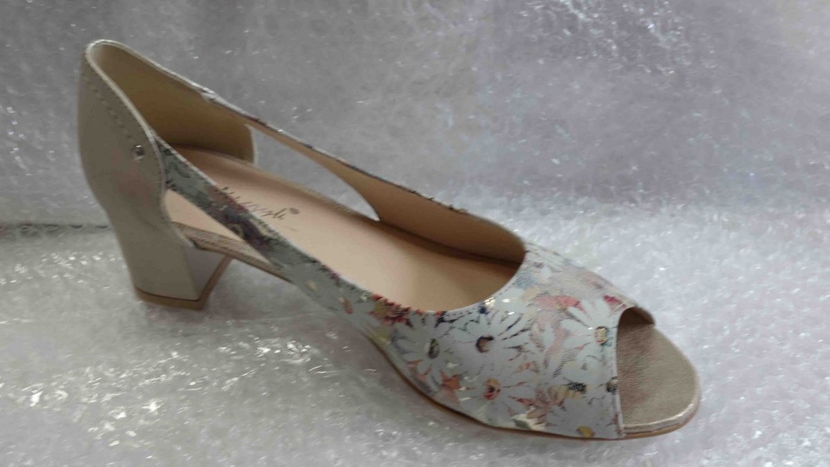 Buty posiadają zdobienia w formie kwiatów, które dodają im uroku i oryginalności. Cechują się wyjątkowym komfortem noszenia dzięki miękkiej wyściółce wewnętrznej i szerokiemu, stabilnemu obcasowi o wysokości 4,8 cm. Miejsce na palce oraz piętę zostały odpowiednio zabudowane, gwarantując odpowiednie wsparcie i komfort dla stóp.