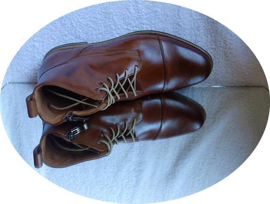 Wnętrze buta w całości zostało wykonane ze skóry naturalnej, podobnie jak cholewka - bez żadnych dodatków eko. Podeszwa jest wykonana z gumy, co zapewnia dobrą przyczepność. Buty mają sznurowadła z przodu oraz dodatkowy boczny zamek, który umożliwia szybkie zakładanie butów dla wygodników.