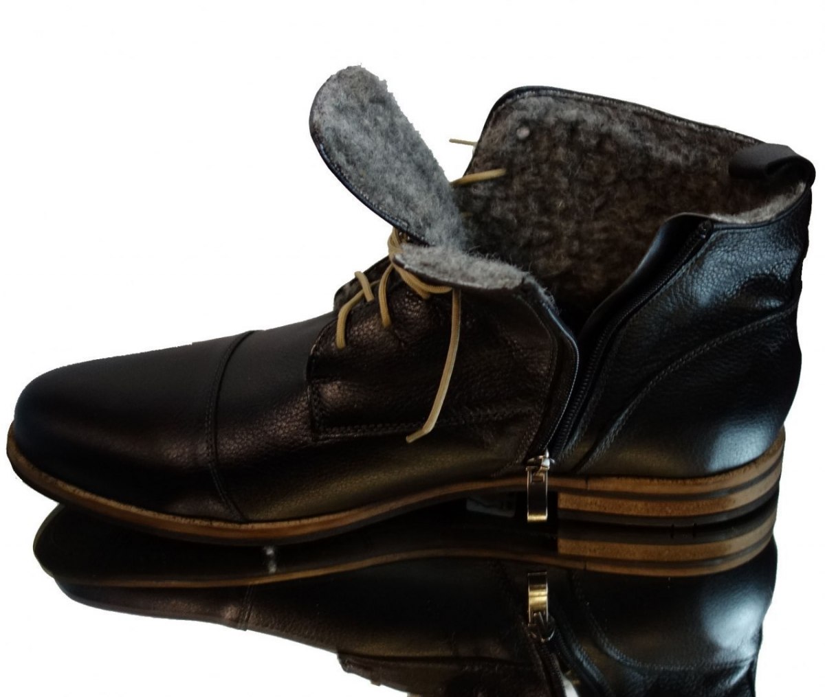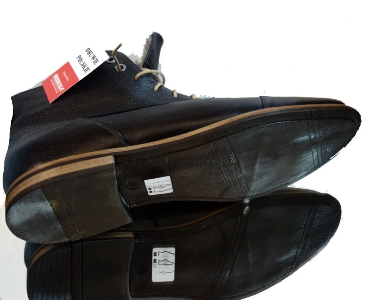 Trzewiki skórzane męskie – czarne, ocieplone, rozmiar 42