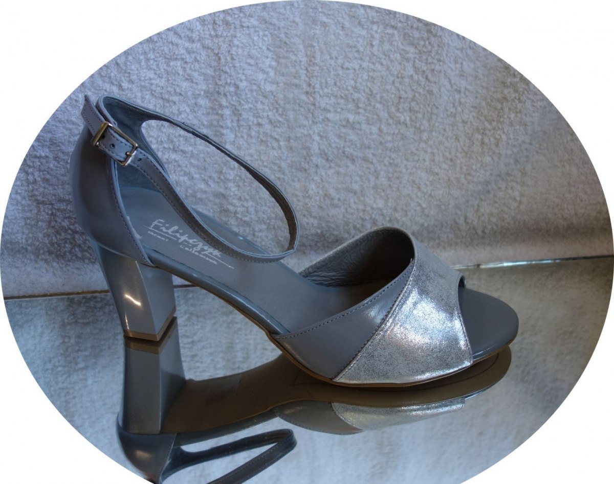 Nowoczesne, lekkie i komfortowe sandały, specjalnie zaprojektowane dla szerokich stóp. Wykonane z wysokiej jakości skóry naturalnej w spokojnym srebrno-popielatym odcieniu. Sandały posiadają wygodny słupkowy obcas o wysokości 8 cm, który gwarantuje stabilność podczas chodzenia. Bezpalcowe modele z pełną piętką i klamrą w okolicach kostki zapewniają doskonałe dopasowanie.